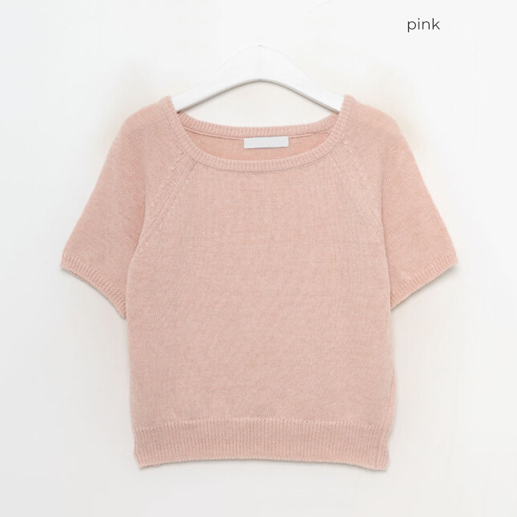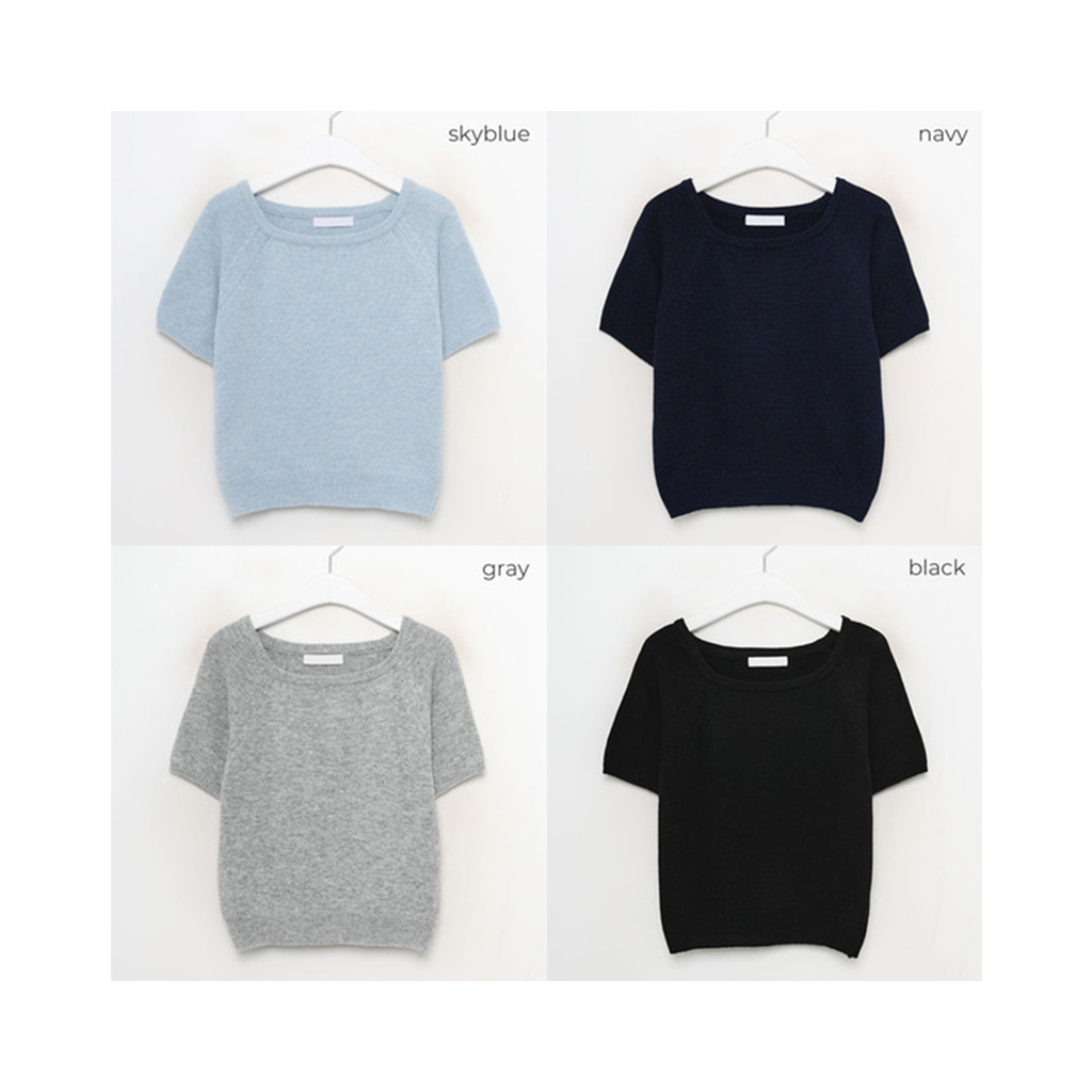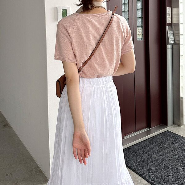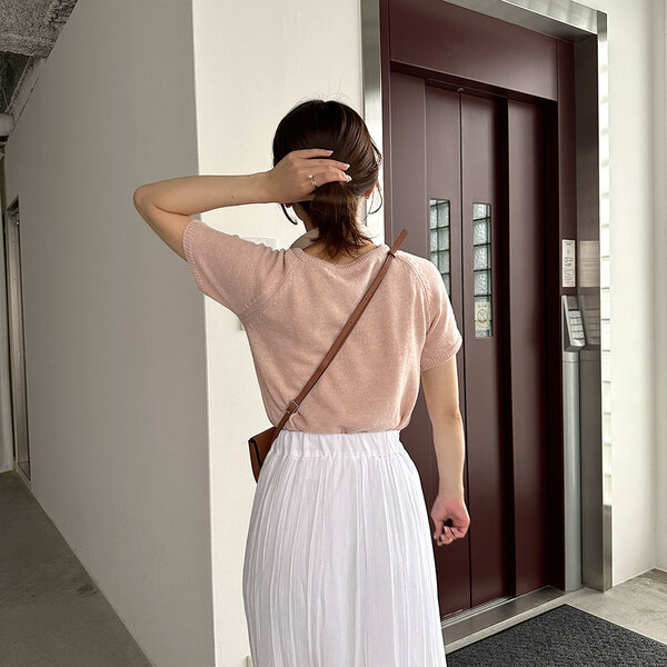 Uネック半袖ニット