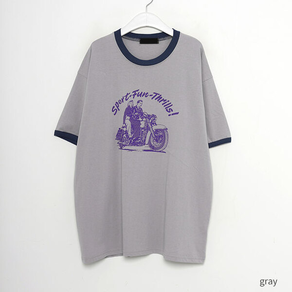 バイカラー半袖プリントTシャツ