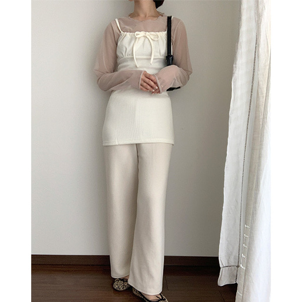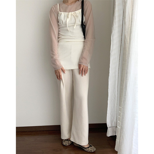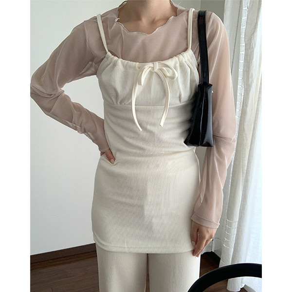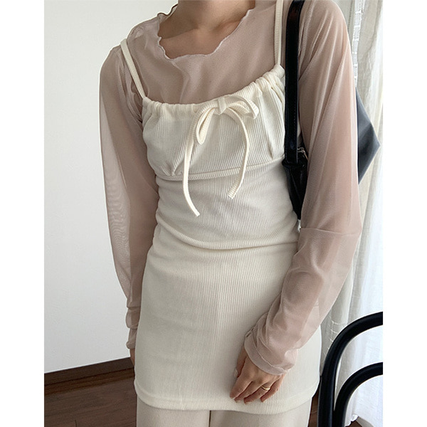 リボンストラップレイヤードミニワンピース