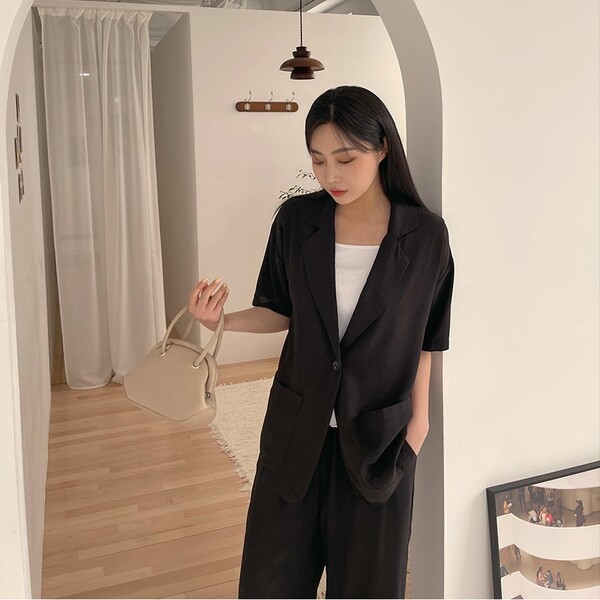 | 詳細情報 | 厚み-薄い /重み-軽い /伸縮性-高い /透け感-若干 /裏地-なし /ポケット-フロント /ボタン-フロント /ファスナー-なし |