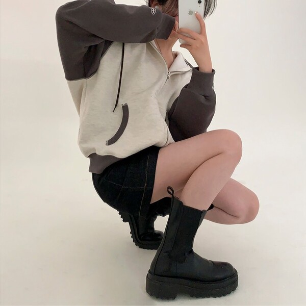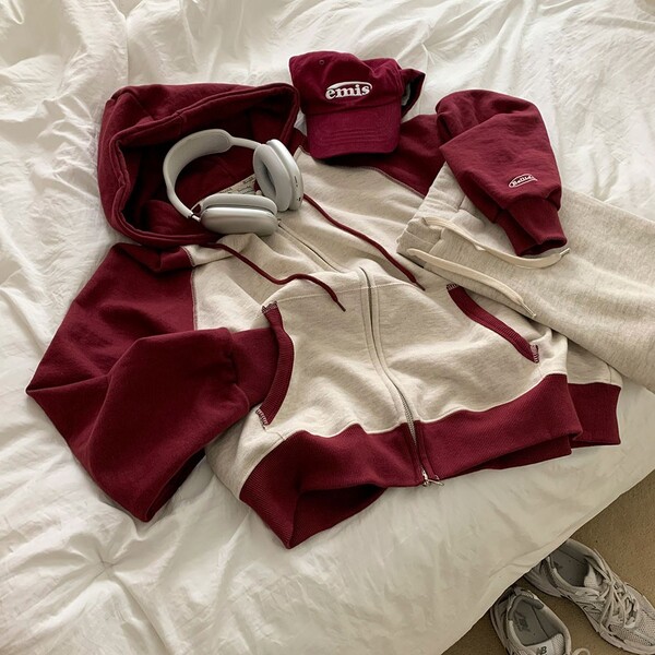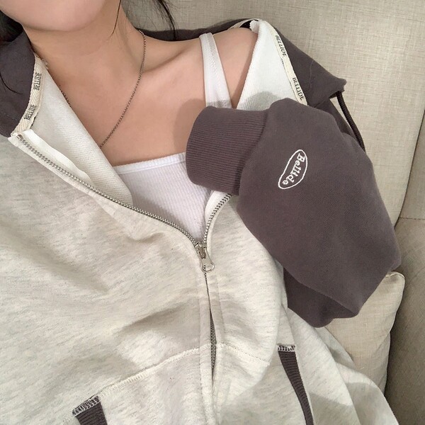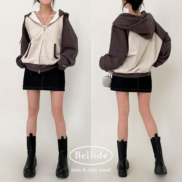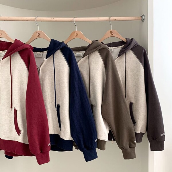 (ORIGINAL) 春のバージョン.ラグラン配色ジップアップパーカー