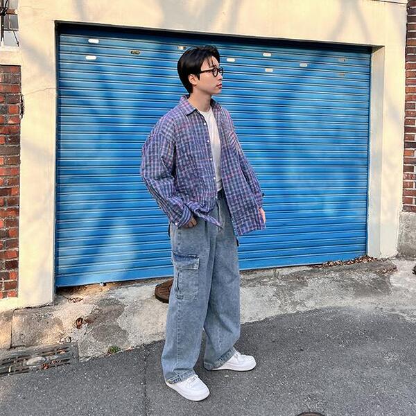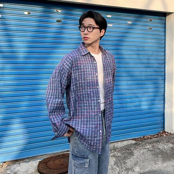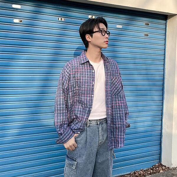 色ミックスチェックシャツ