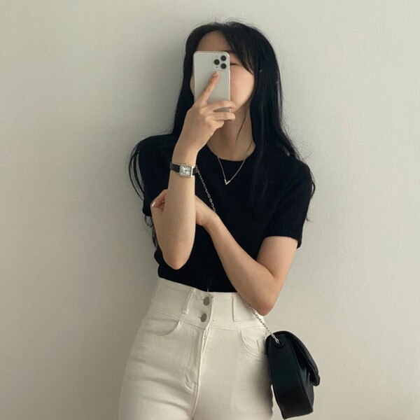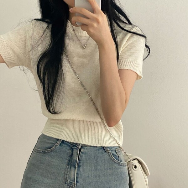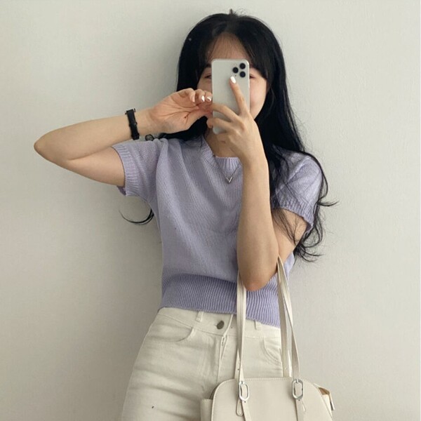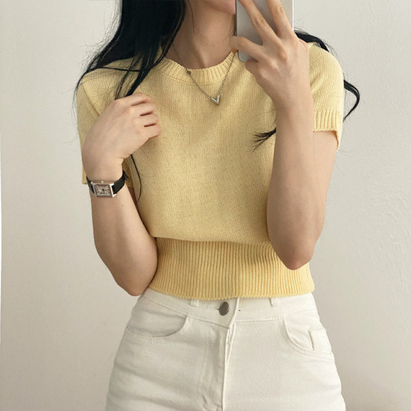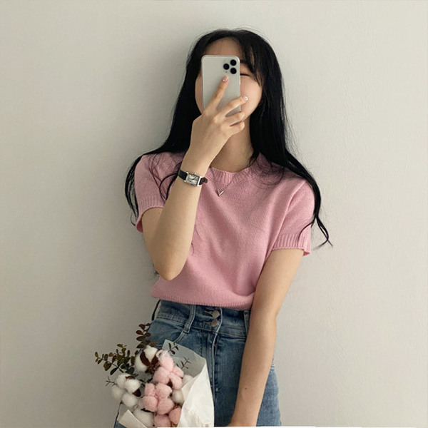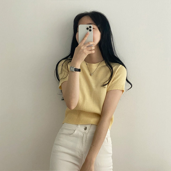 [6color/色味 きれい]デーリー ~基本ラウンドニット半袖