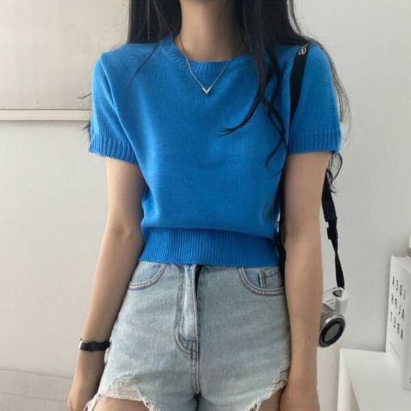 Women's/[6color/色味 きれい]デーリー ~基本ラウンドニット半袖