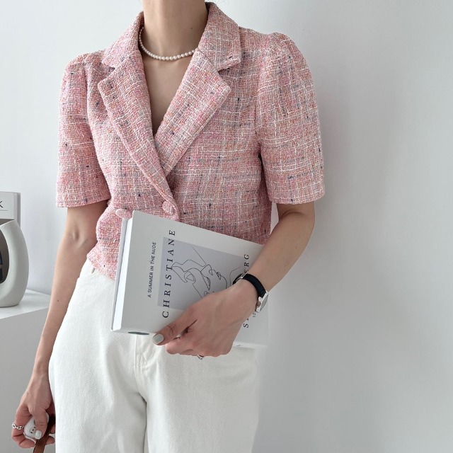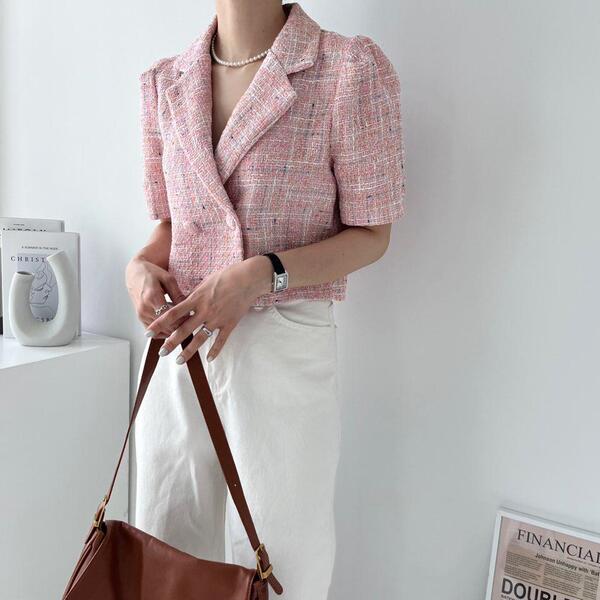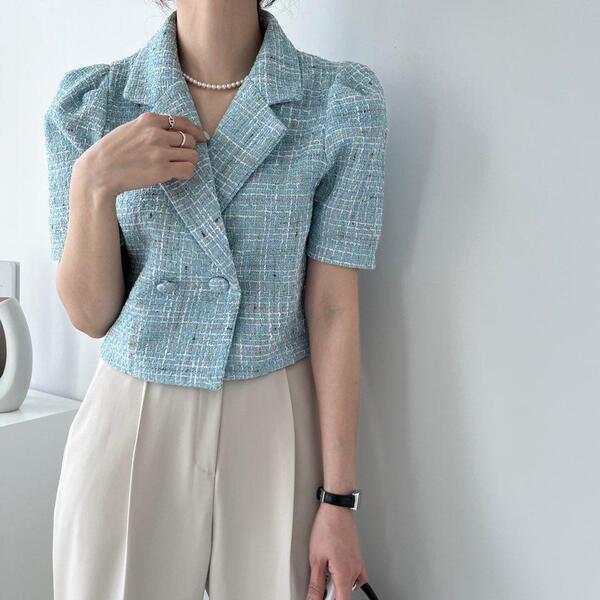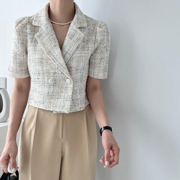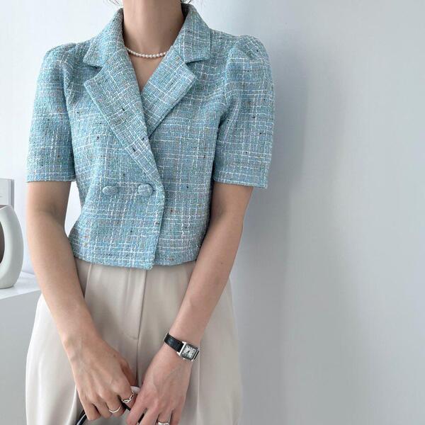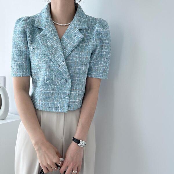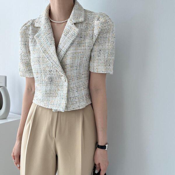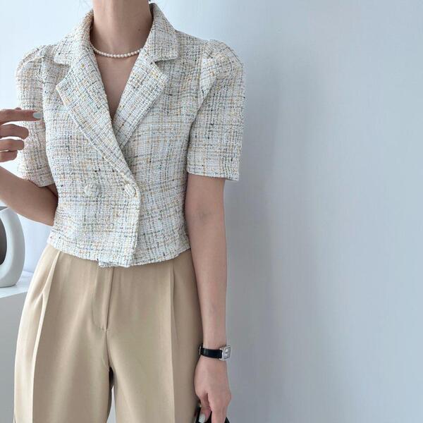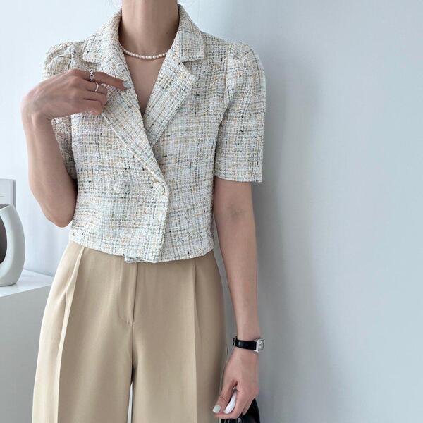 [3col] チェックトゥイード ハーフスリーブ パフジャケット