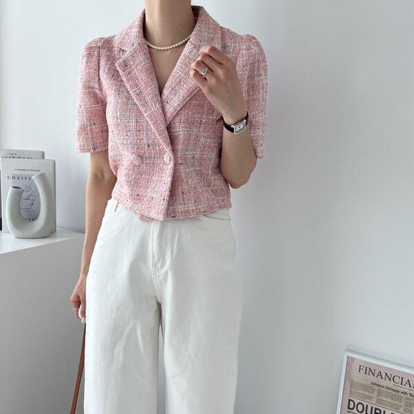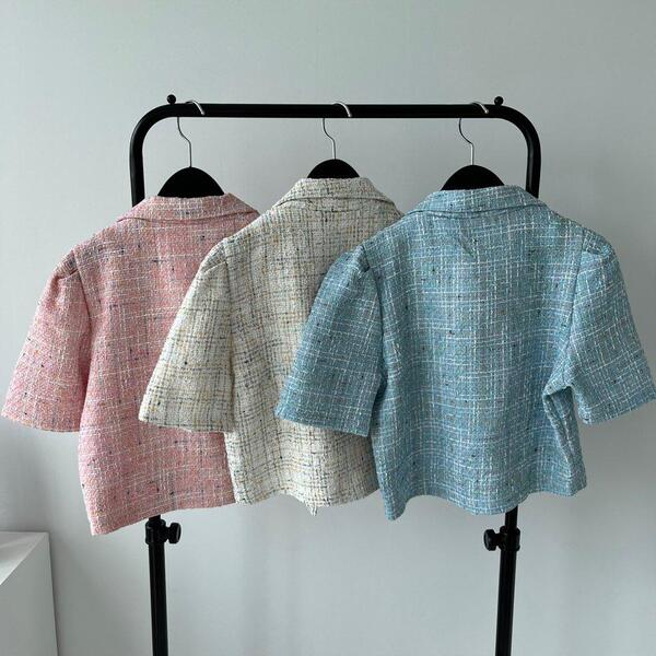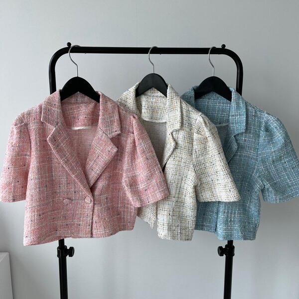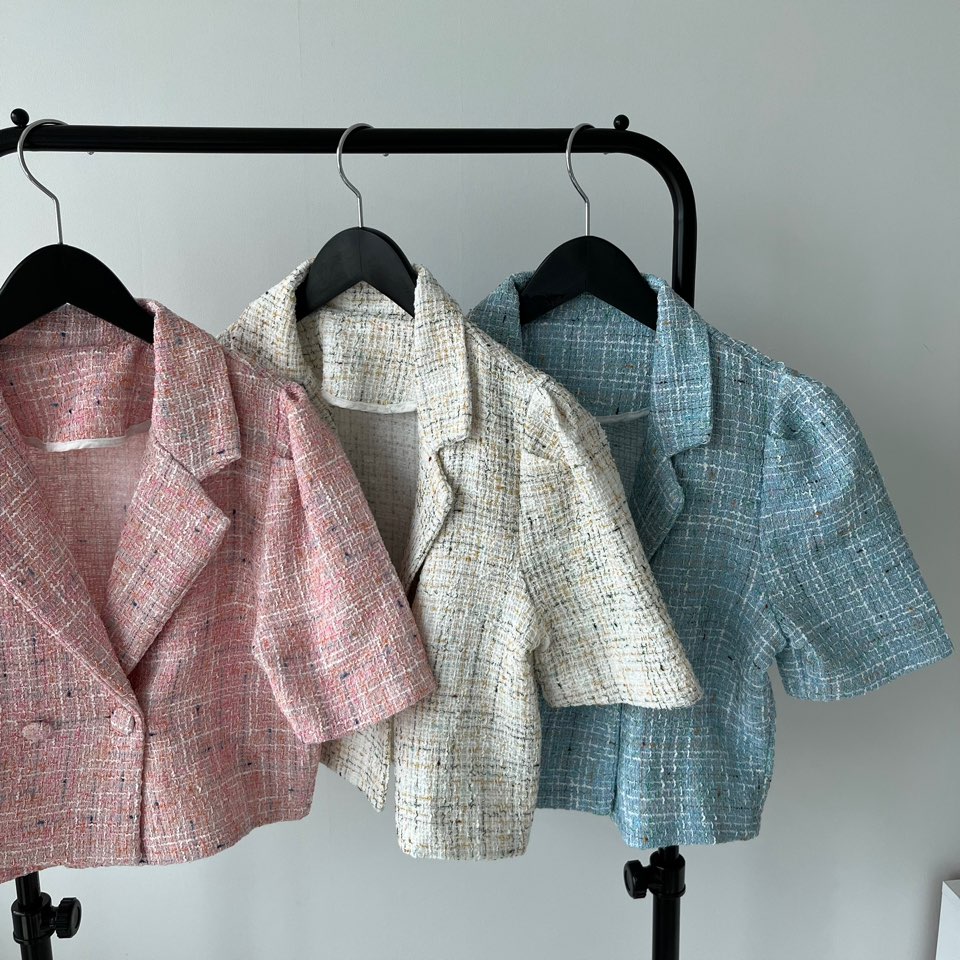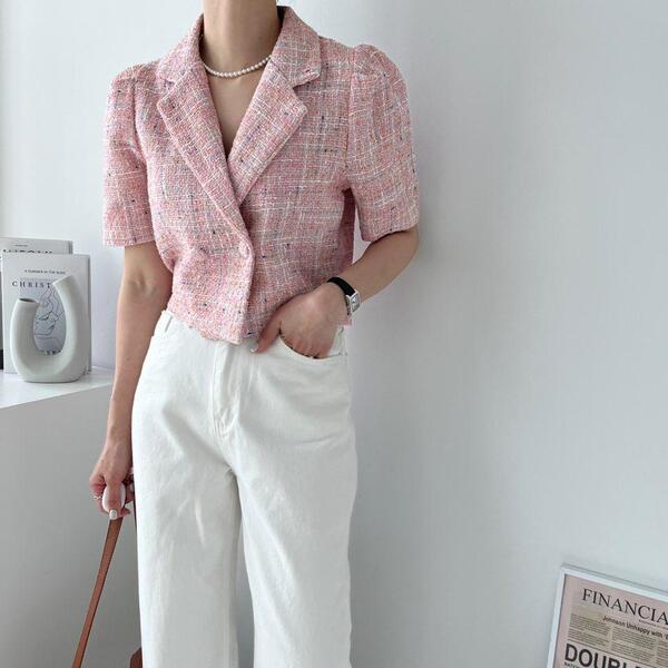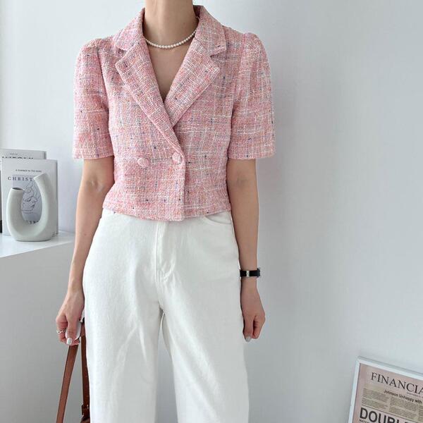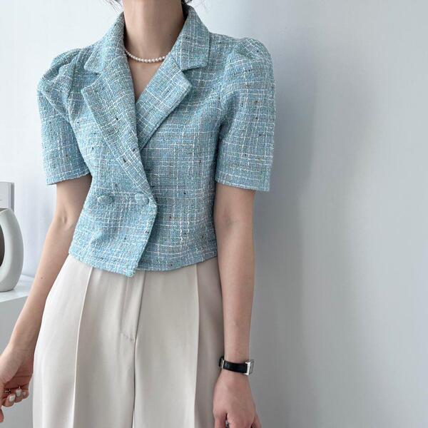 [3col] チェックトゥイード ハーフスリーブ パフジャケット