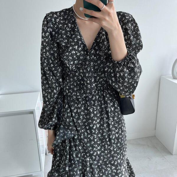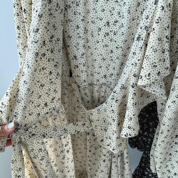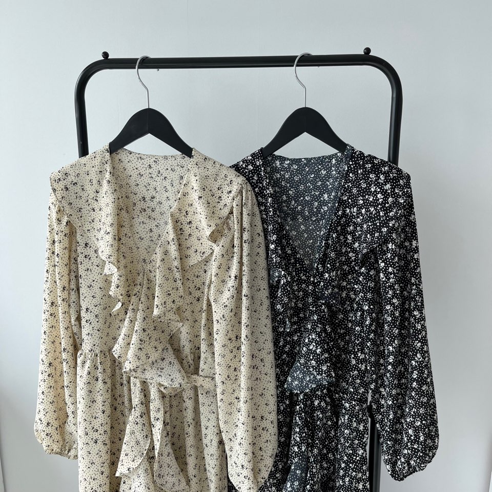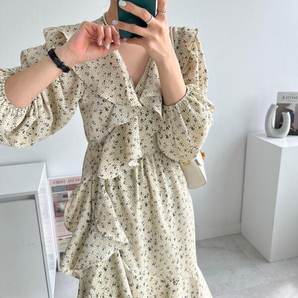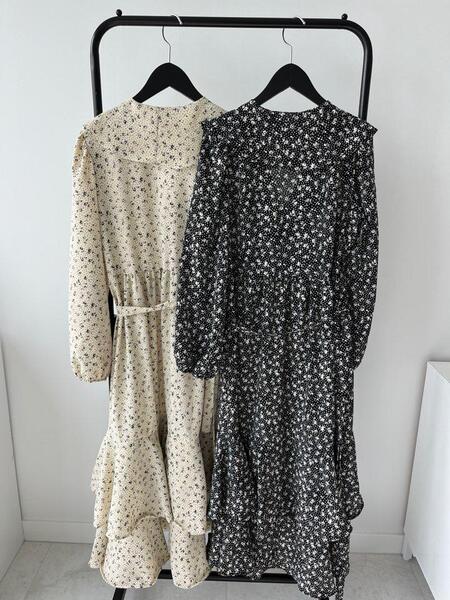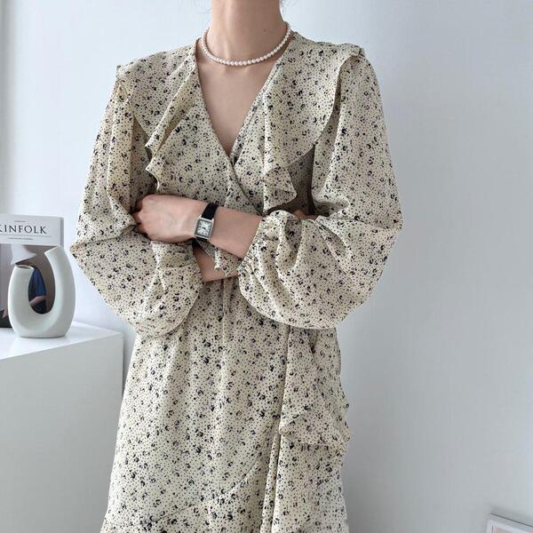 [2col/ロングバージョン] フリル ラッフル フラワー シフォン ラップ ロングドレス