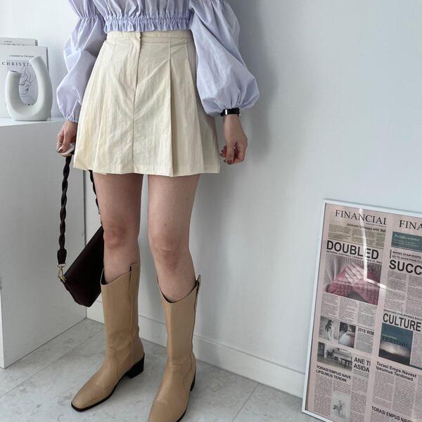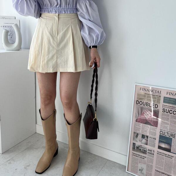 [2col] (春新作) クッキー アノラック プリーツ バンデッド ミニスカート