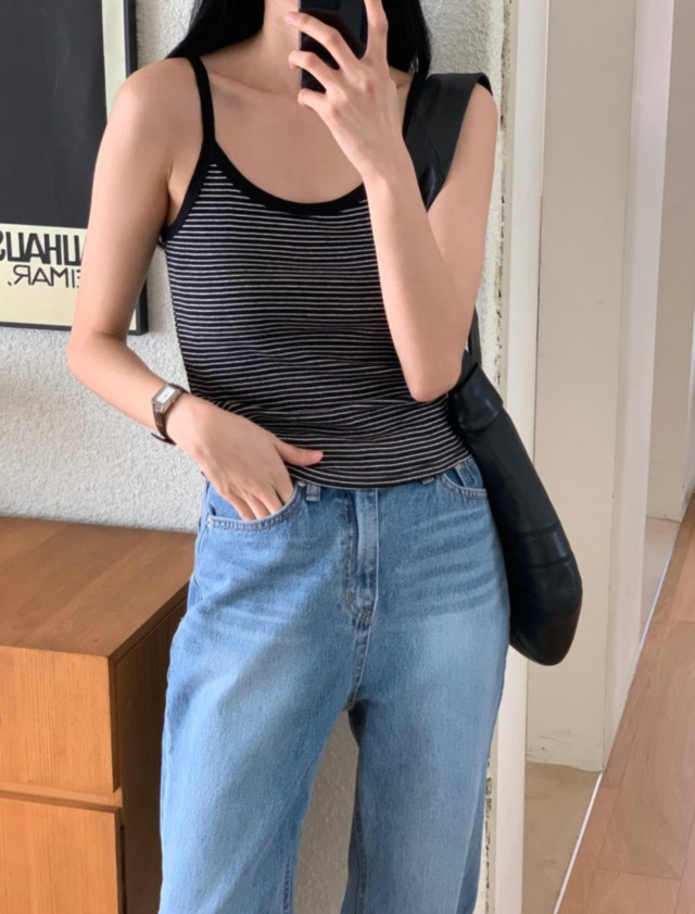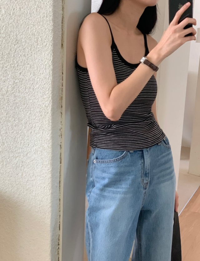 Libre Annaストライプノースリーブキャミソール (3c)