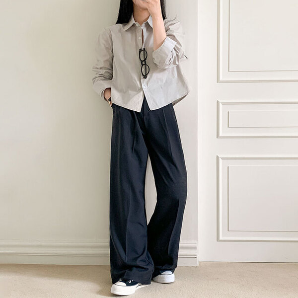 単独でもアウターの中のインナーとしても活用しやすいセミクロップ丈で