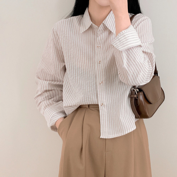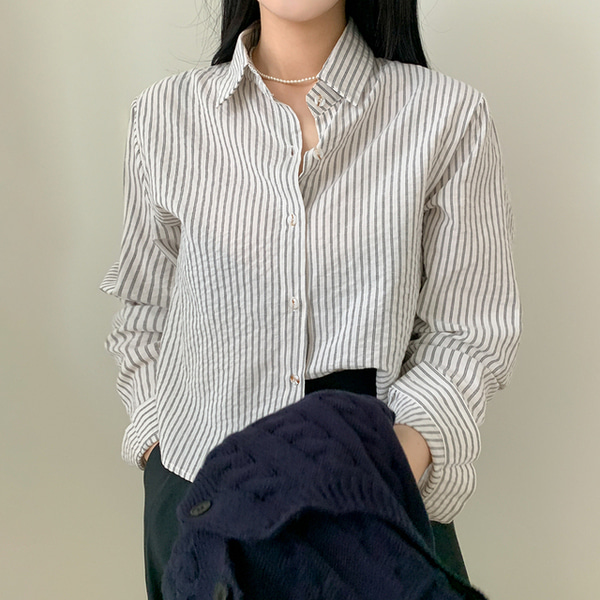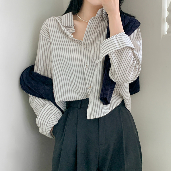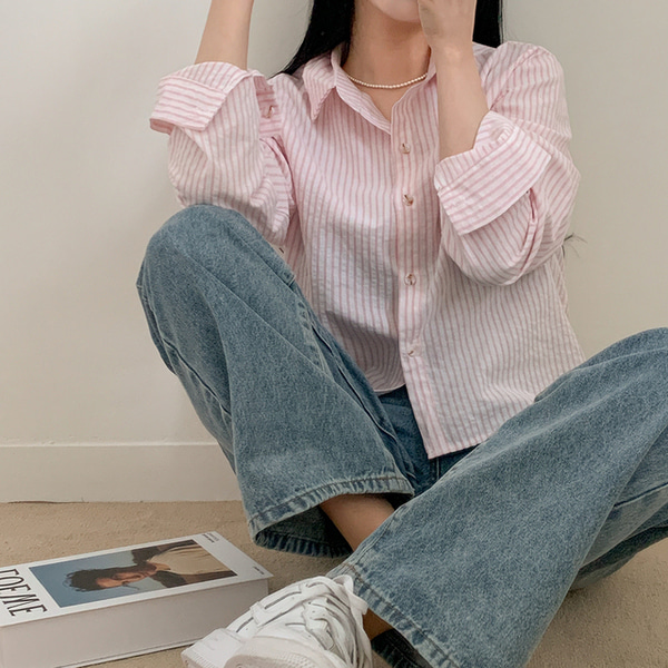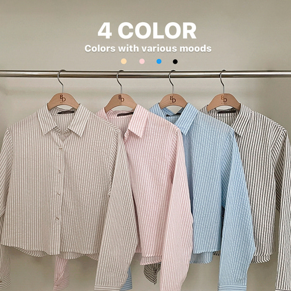 [4color] ハニーオーバーフィットストライプクロップドシャツ