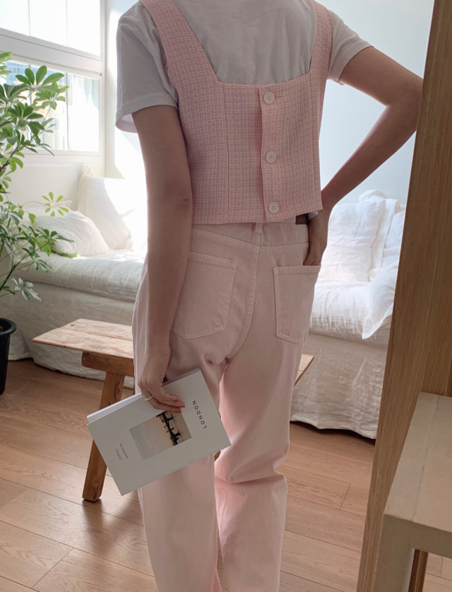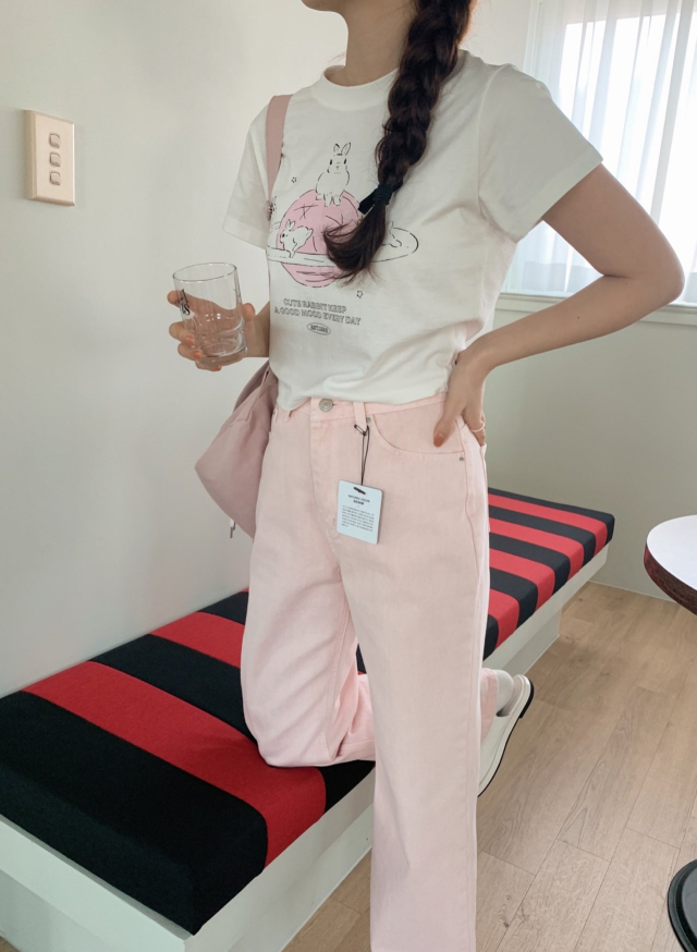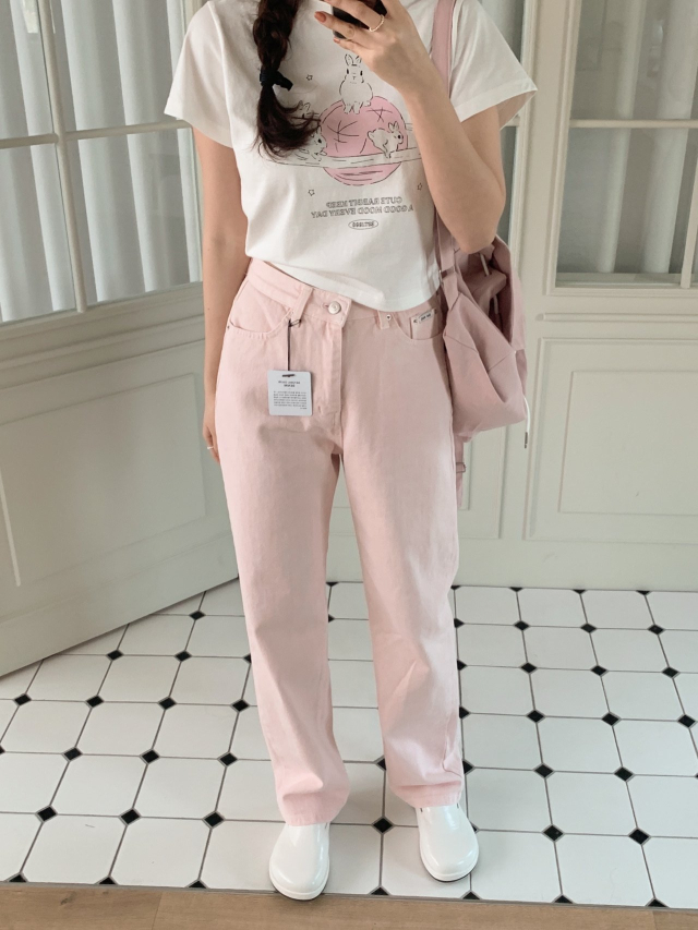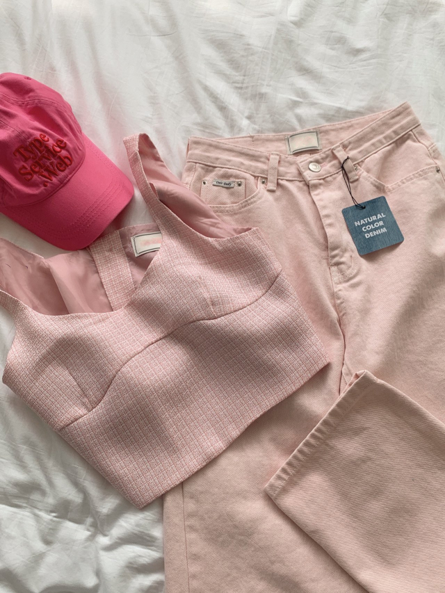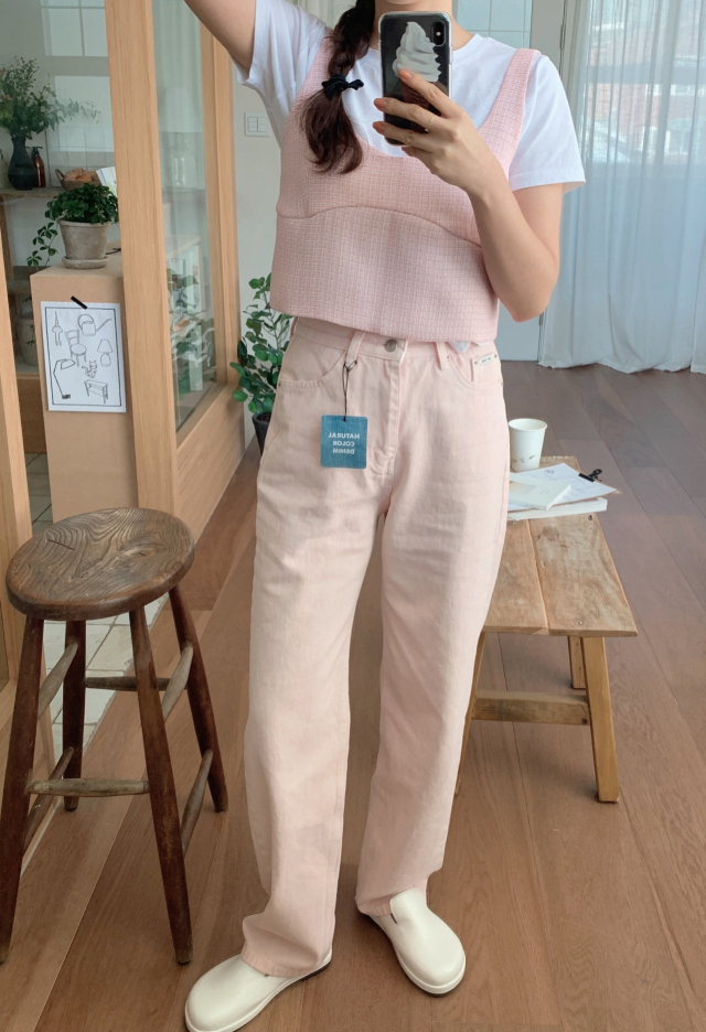 Women's/BelnセミワイドピンクDyeingデニムパンツ