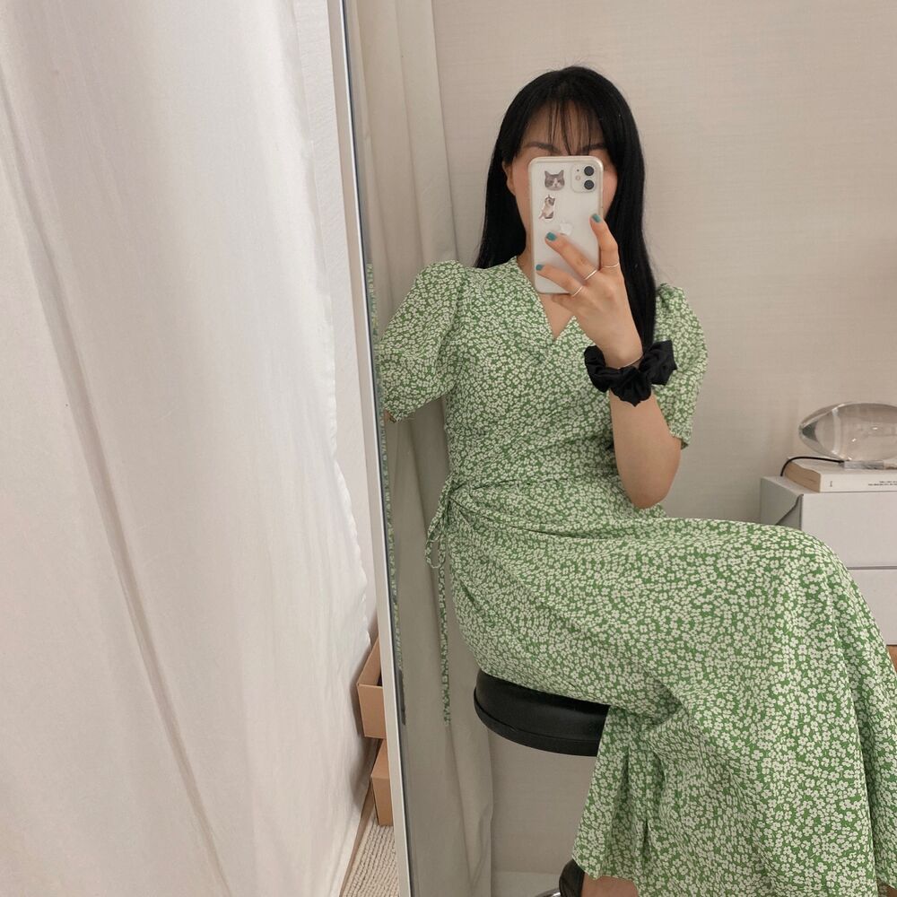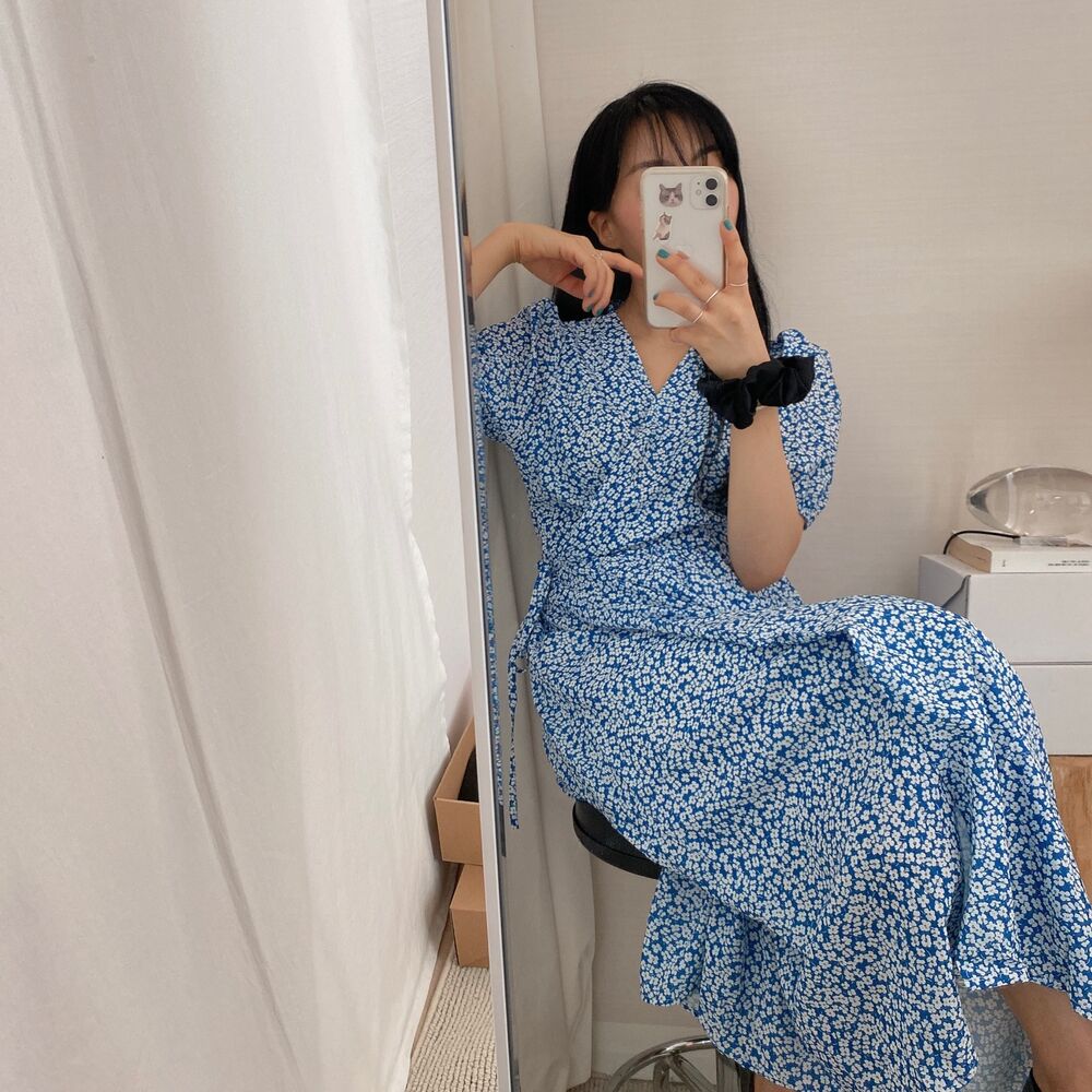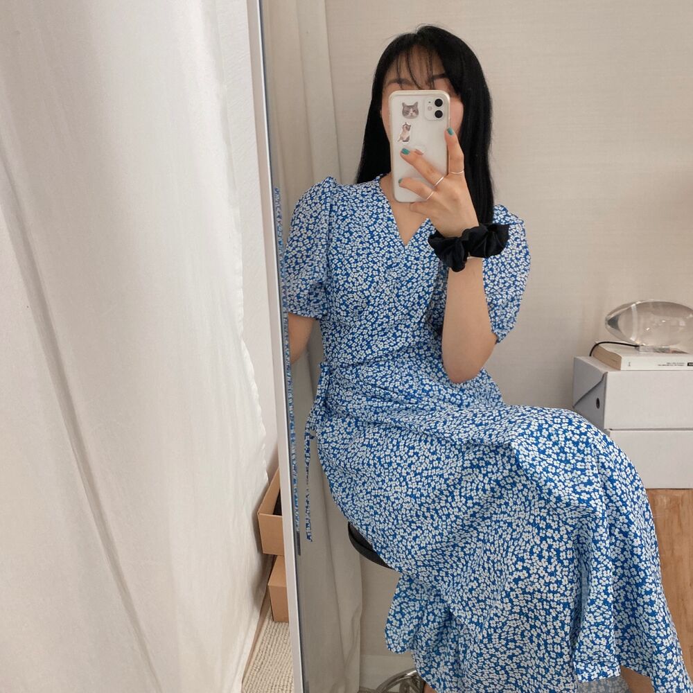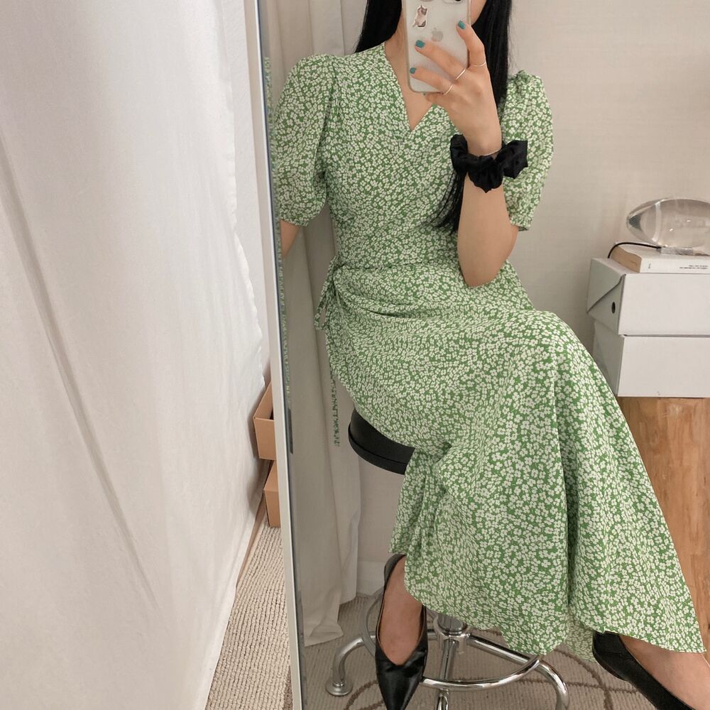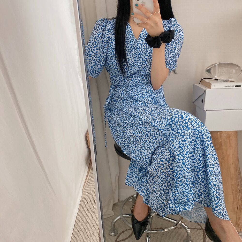 Women's/フラワースプリングシフォンパフショートスリーブドレス
