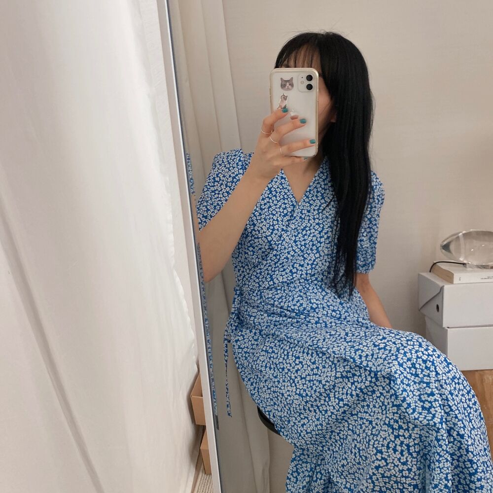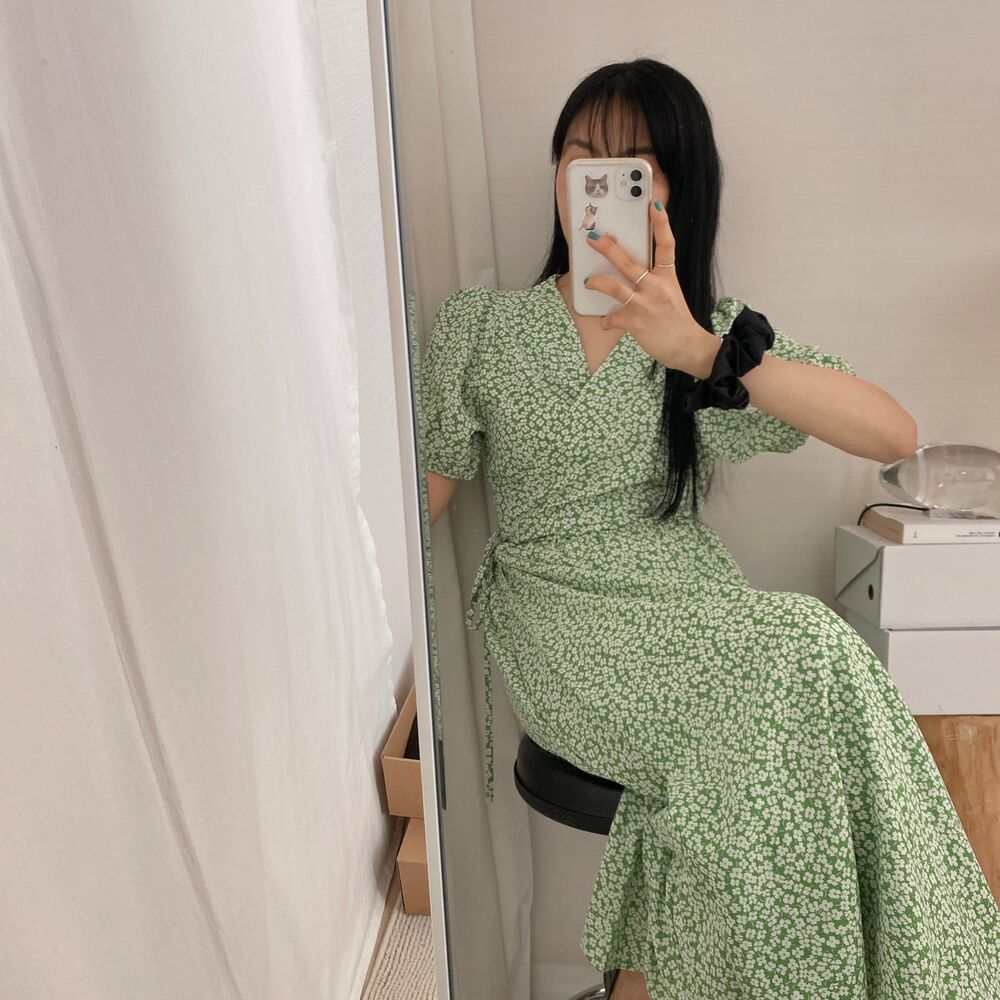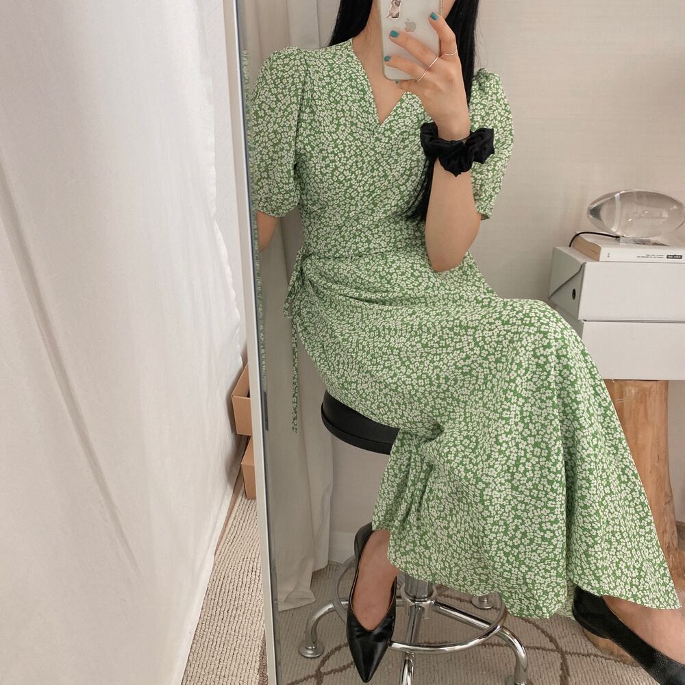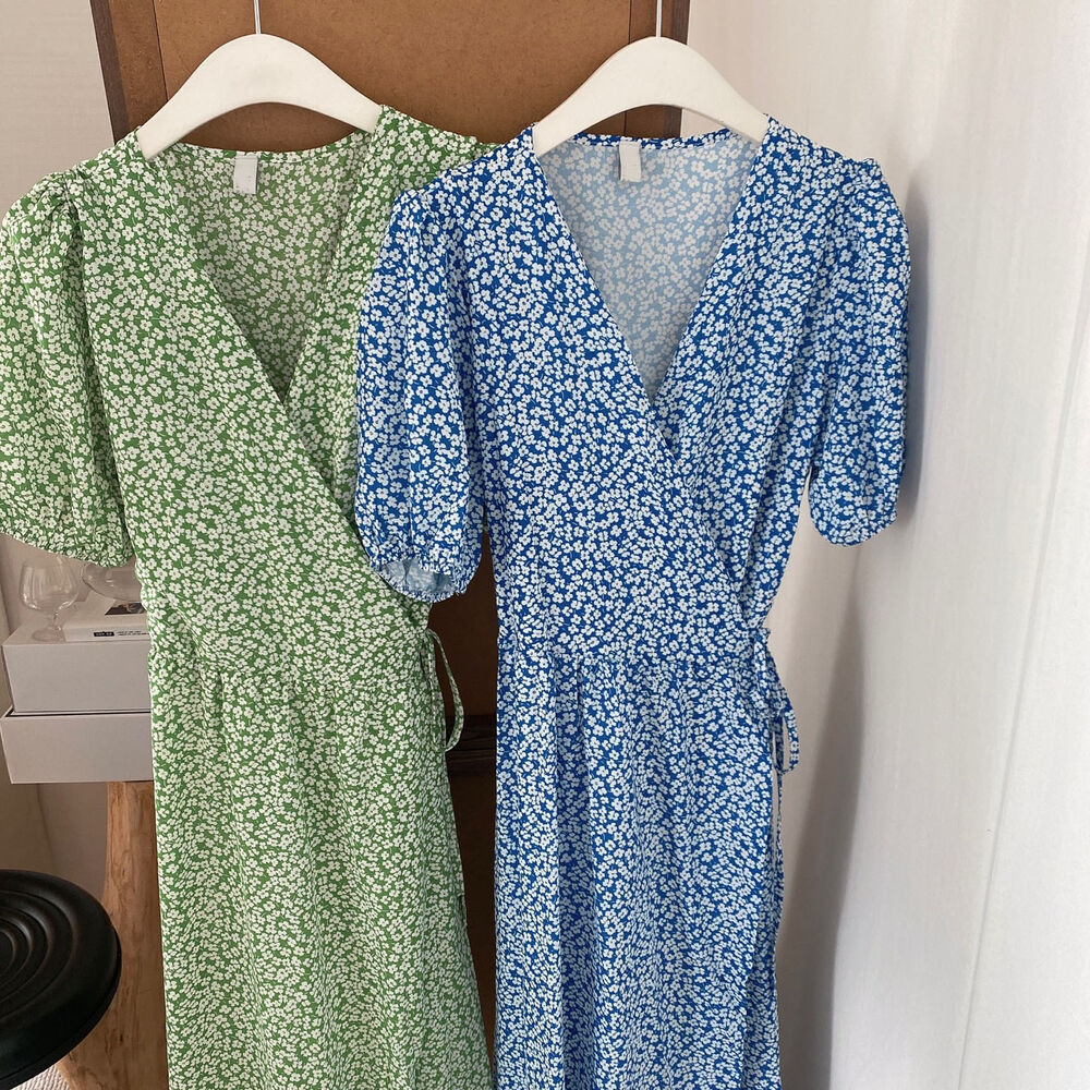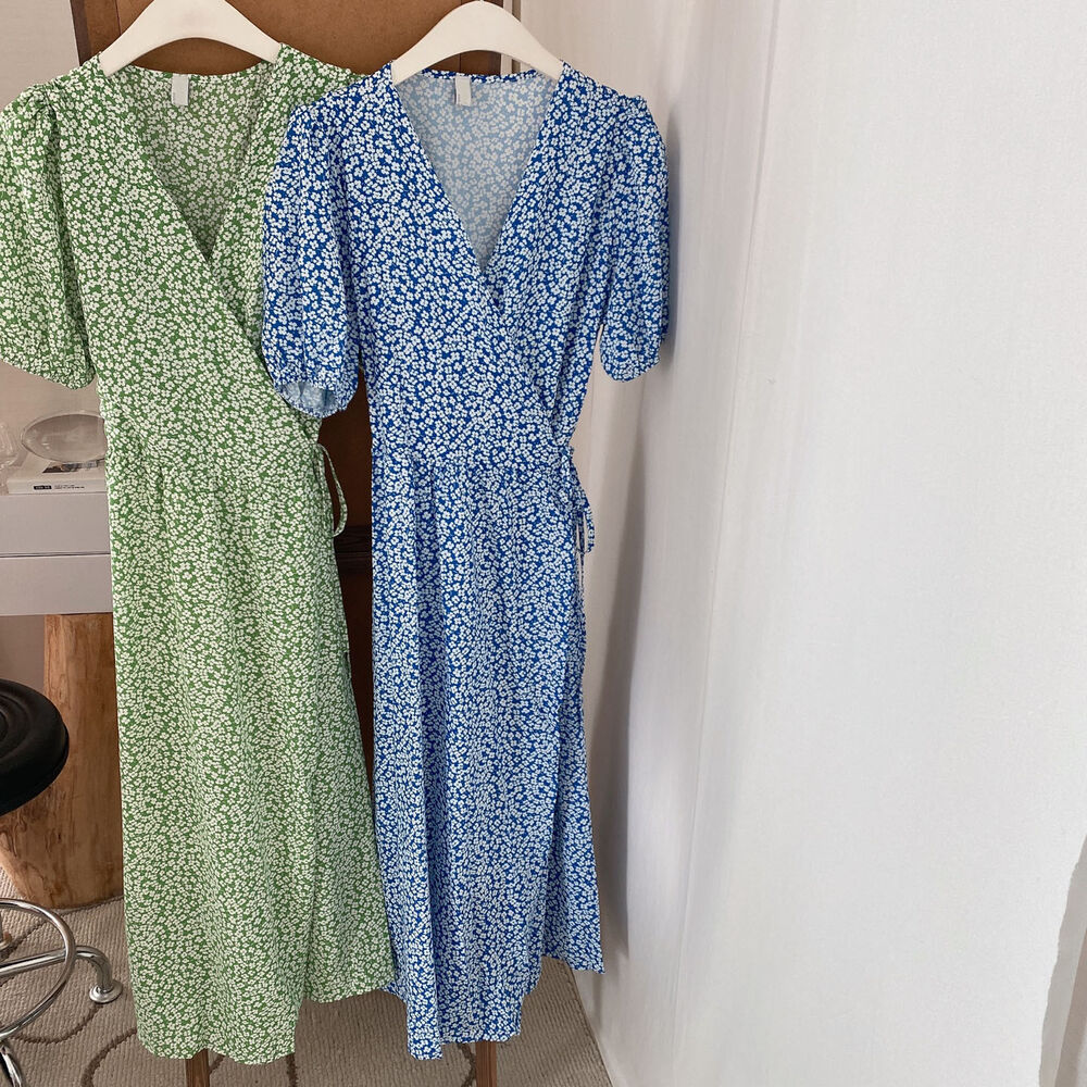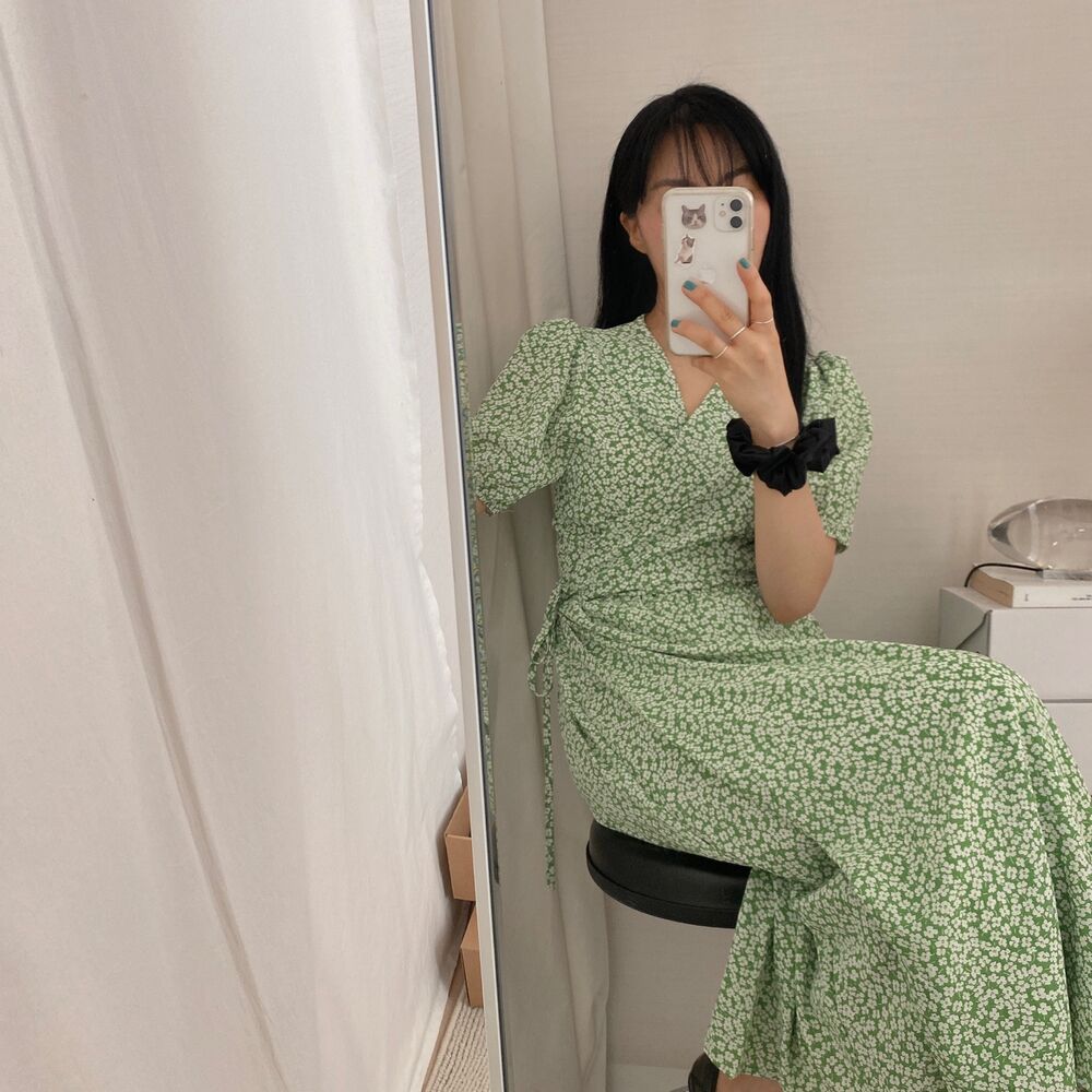 Women's/フラワースプリングシフォンパフショートスリーブドレス