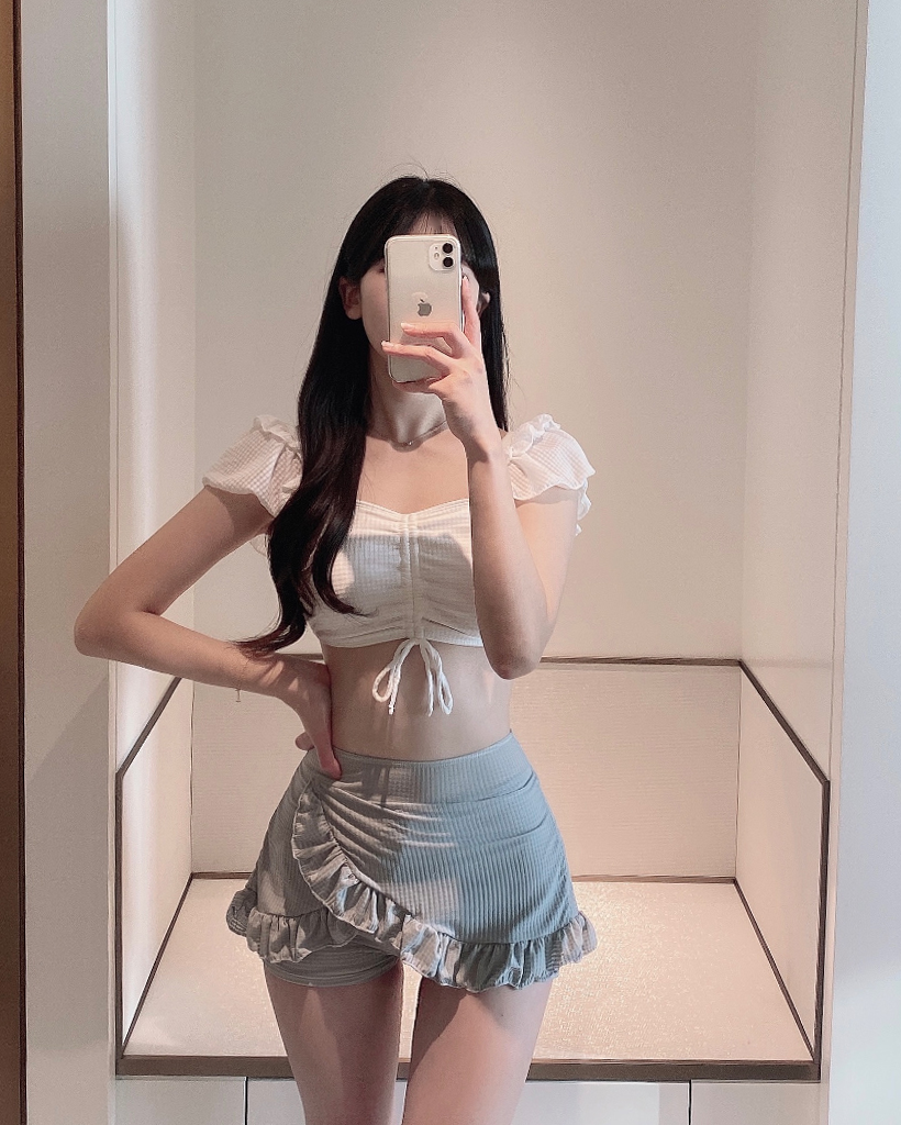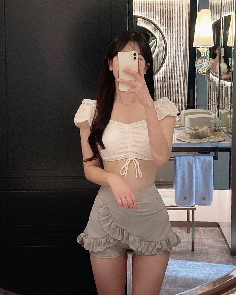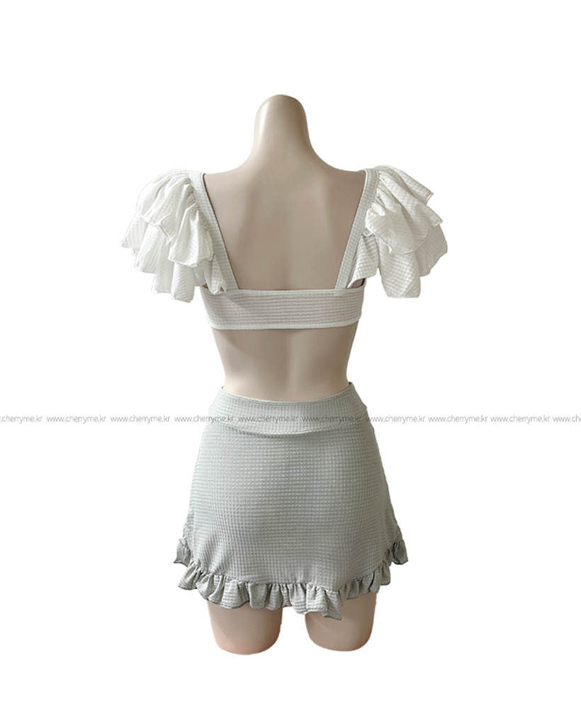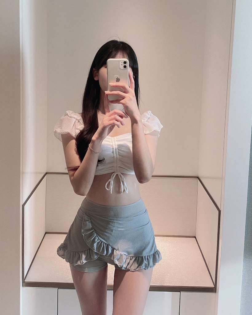 パフスリーブ ハイウエスト水着ビキニ