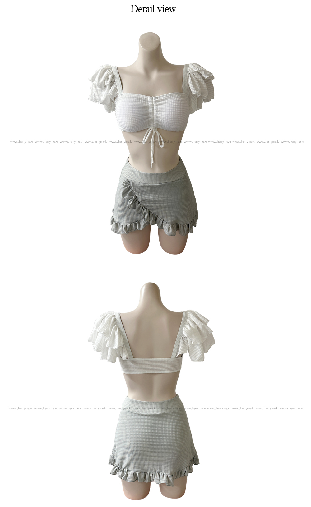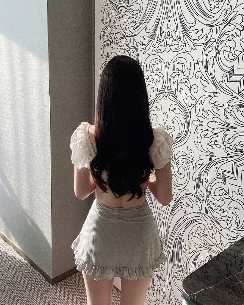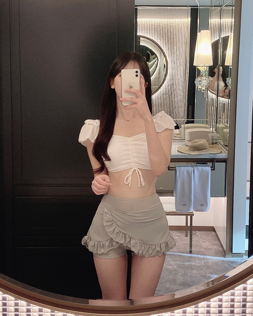 パフスリーブ ハイウエスト水着ビキニ