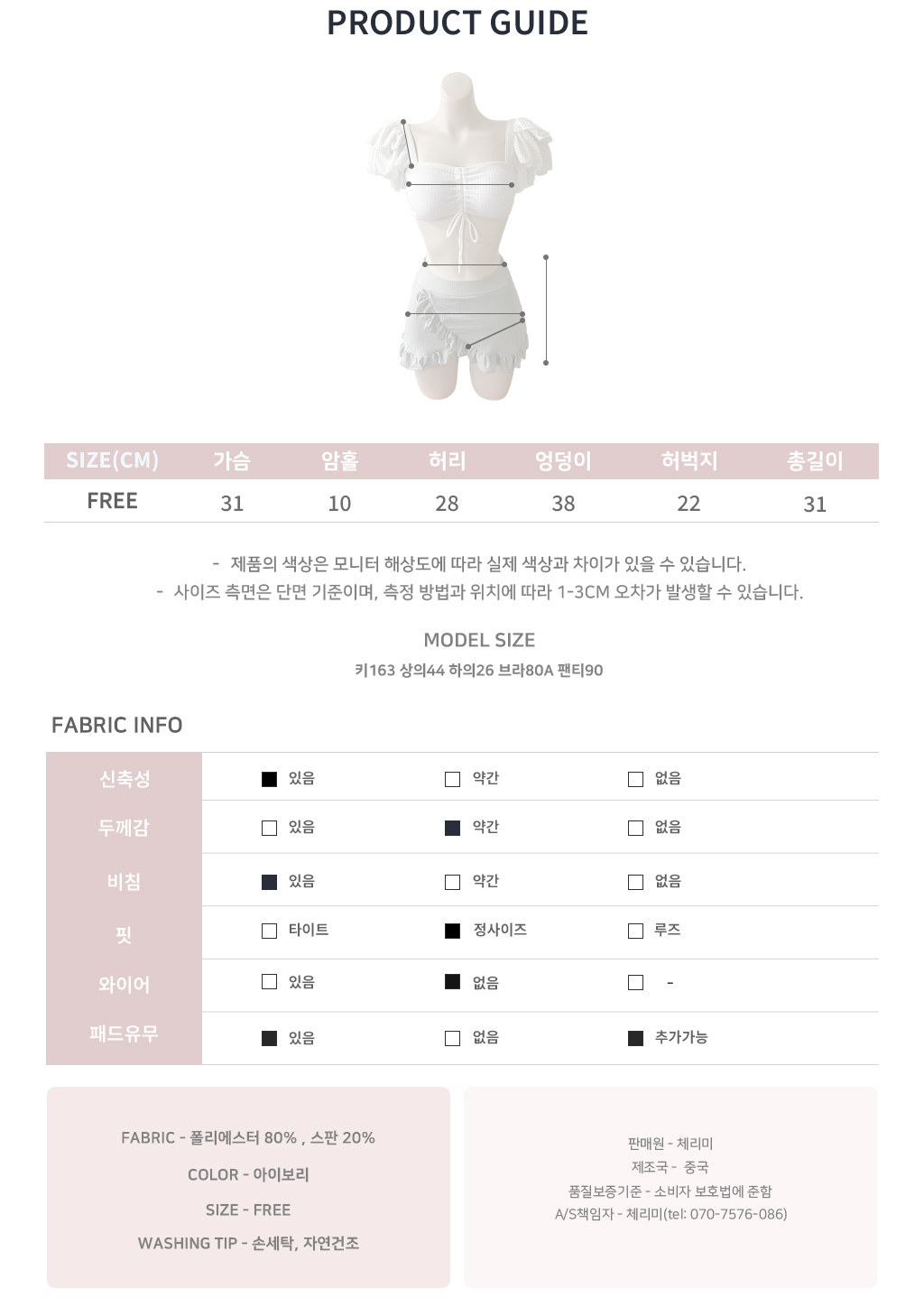 身長163 上着44 下衣26 ブラ80A パンツ90
