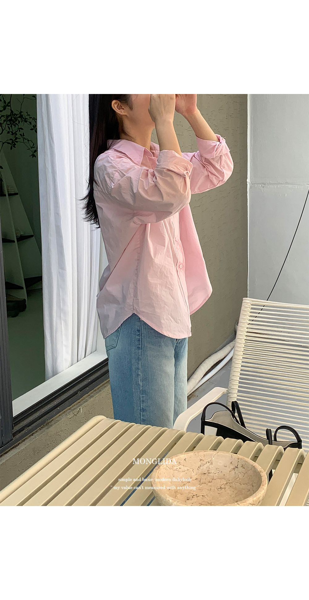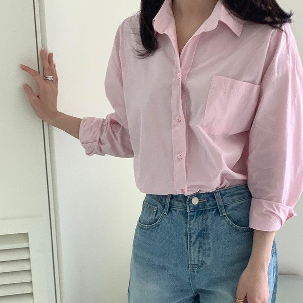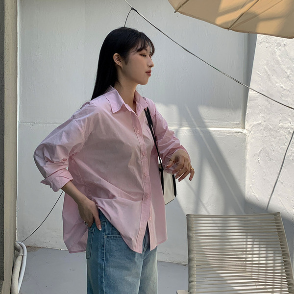 Women's/薄手のコットンシャツ(春、夏/ルーズフィット/無地)