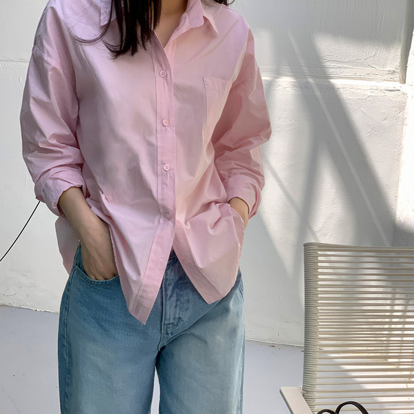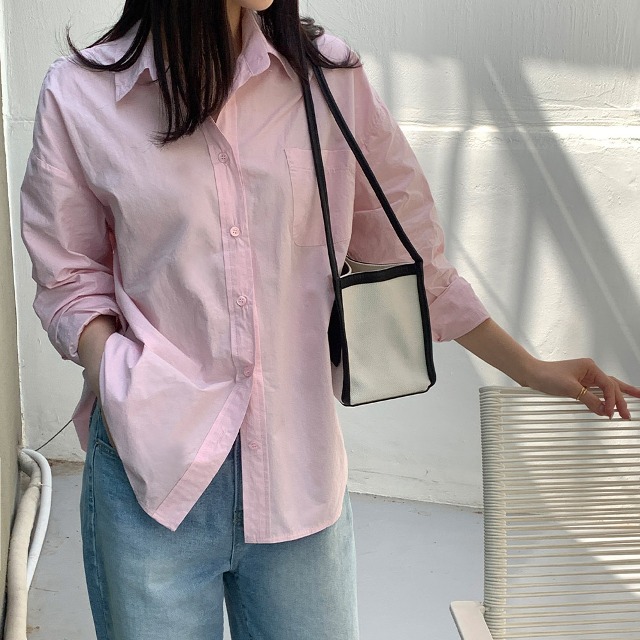 薄手のコットンシャツ(春、夏/ルーズフィット/無地)