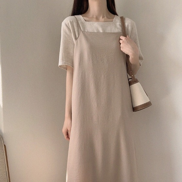 (調整できるストラップ)ビスチェひも調節キャミワンピース