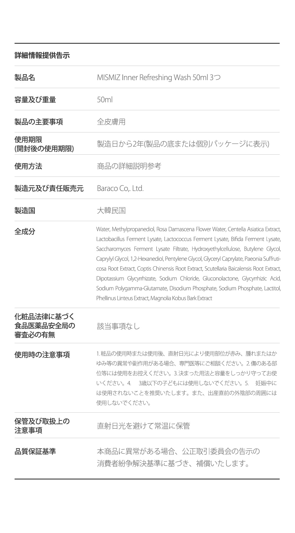 ミスミズ インナー リフレッシュウォッシュ 50ml 3個入