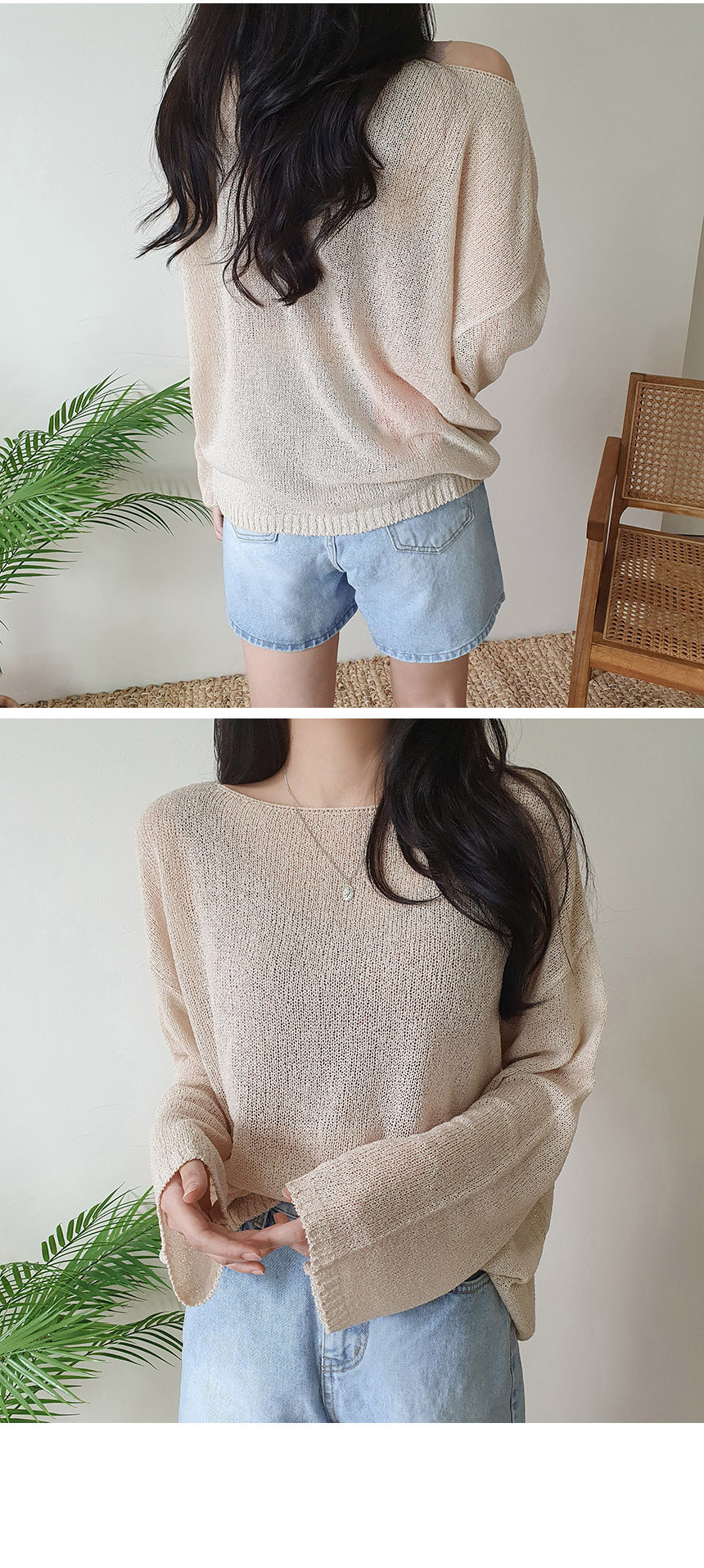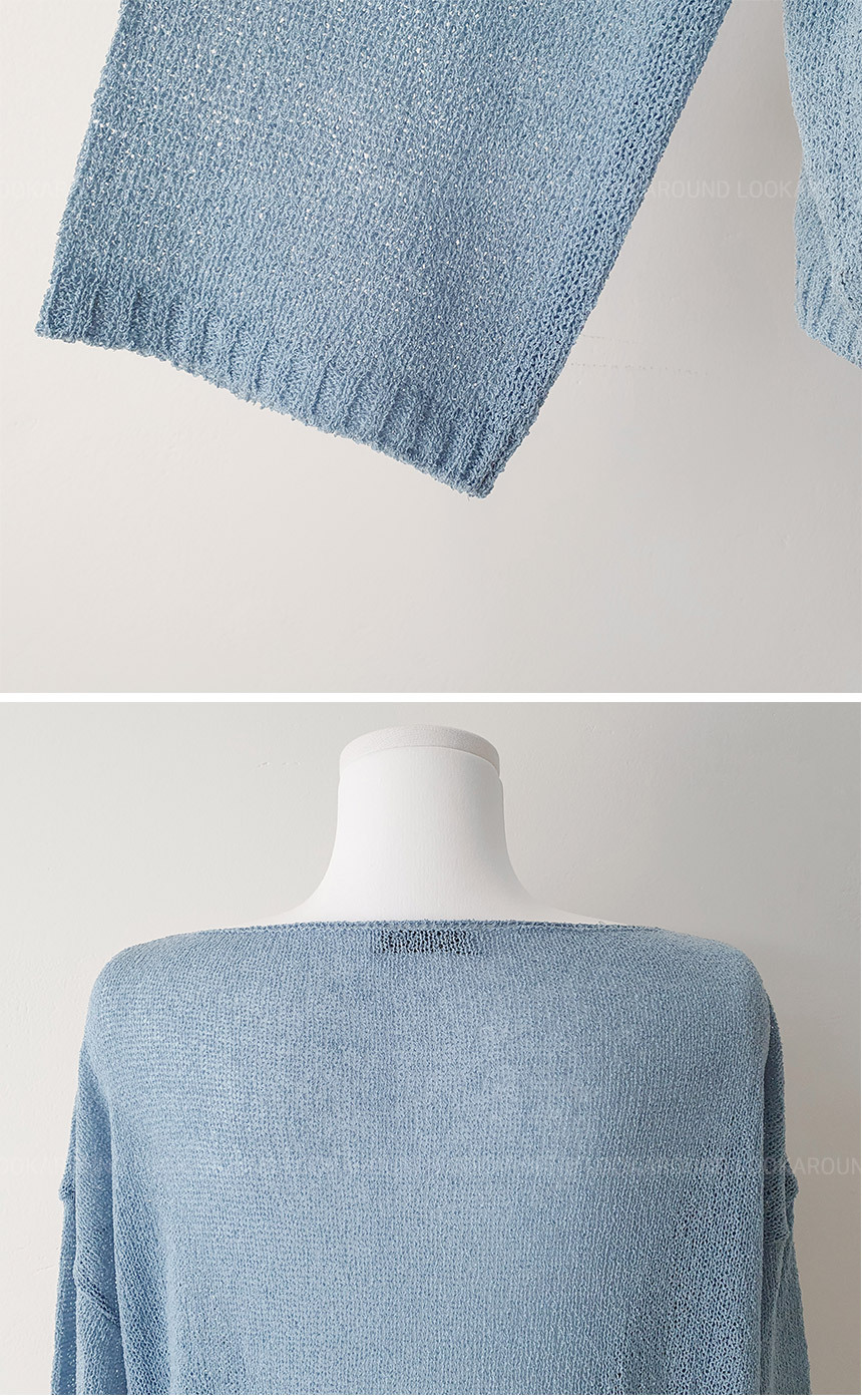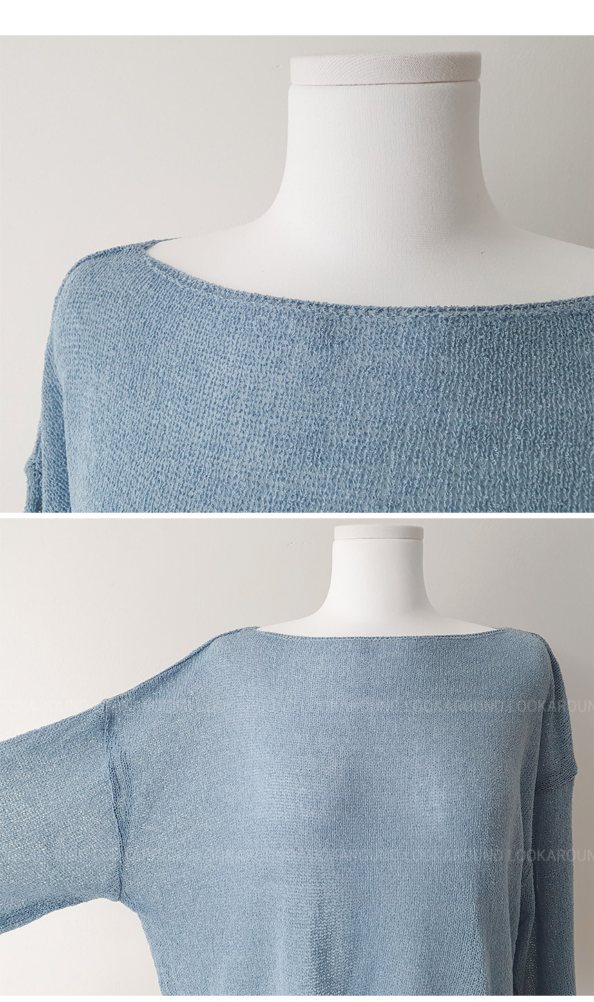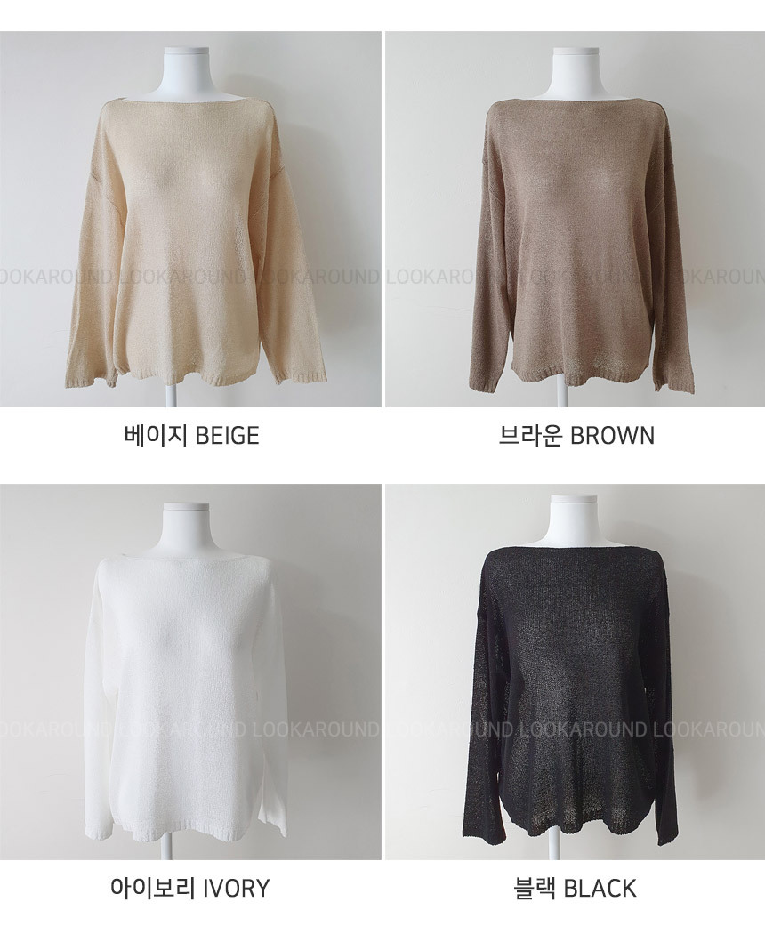 ボートネックブークレ長袖ネットセーター5color