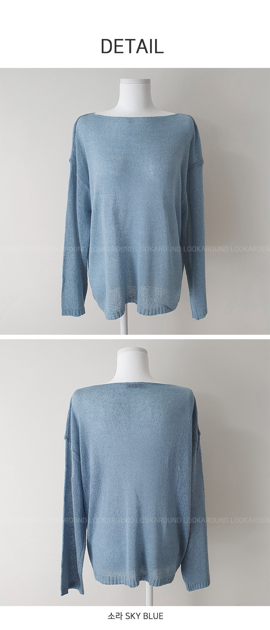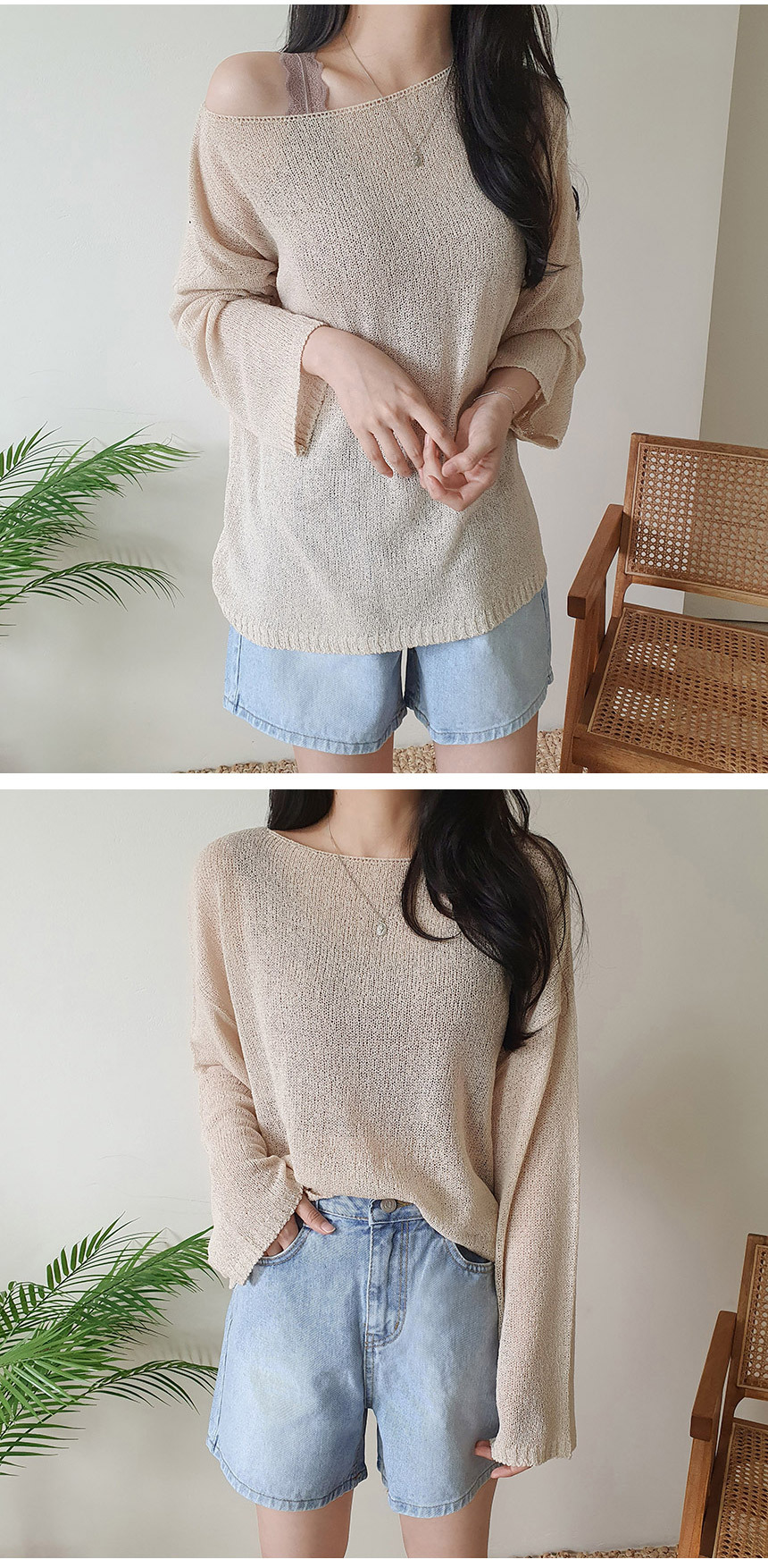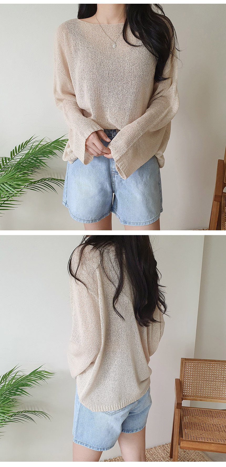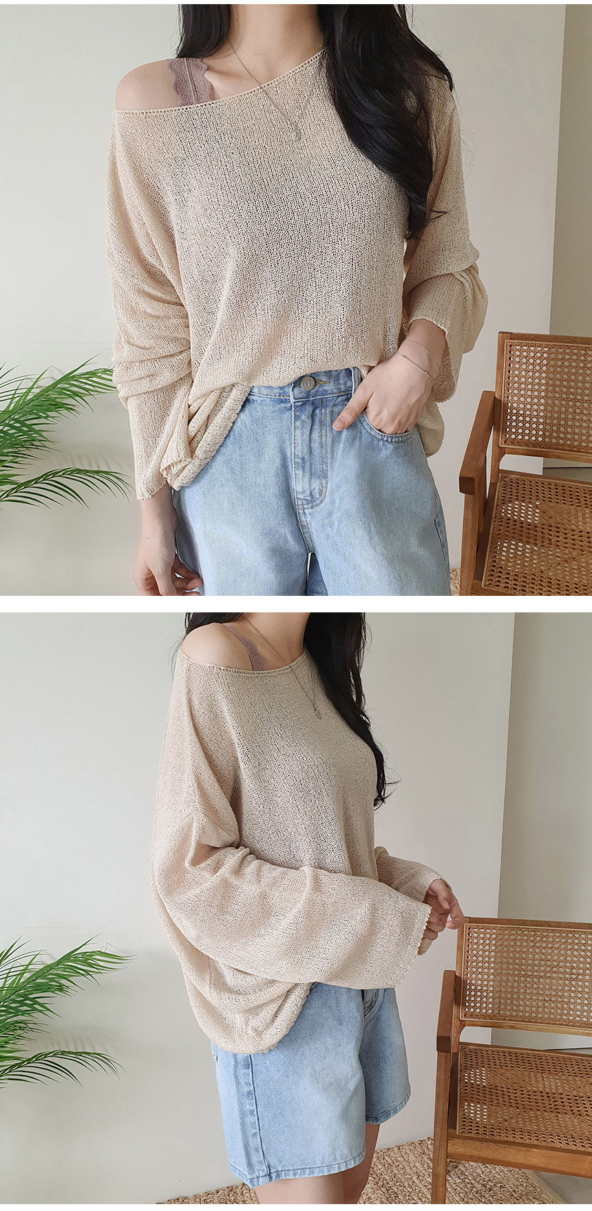 ボートネックブークレ長袖ネットセーター5color