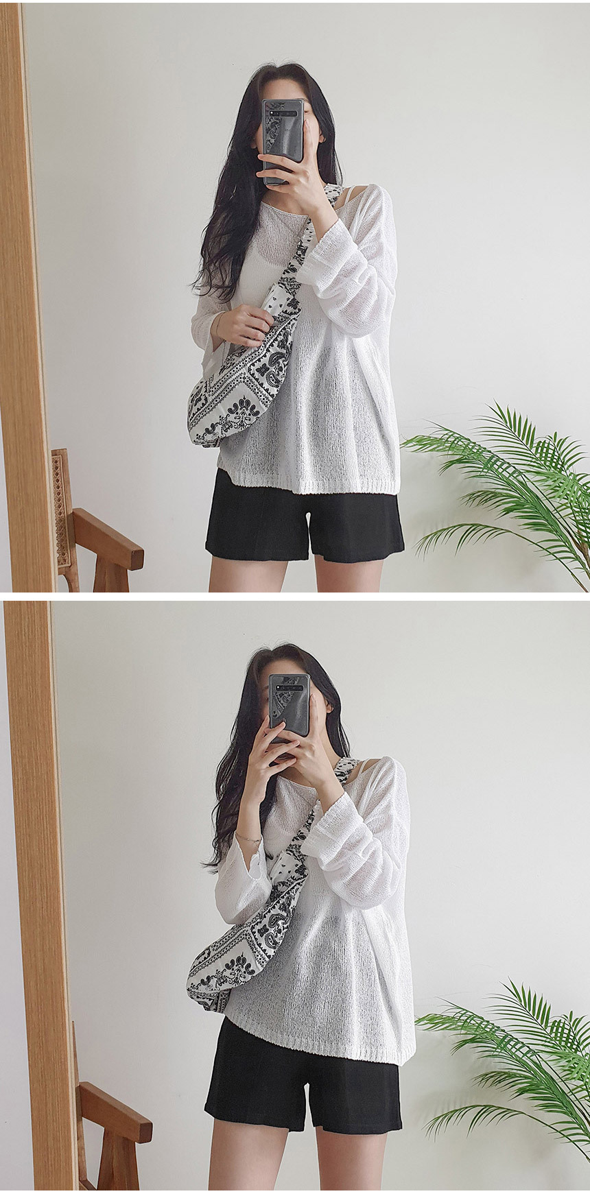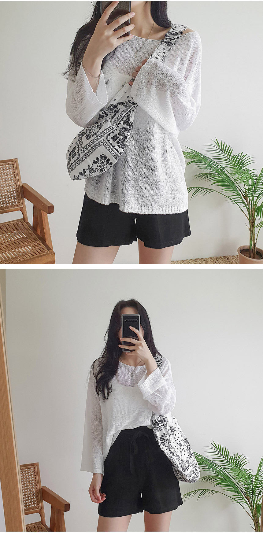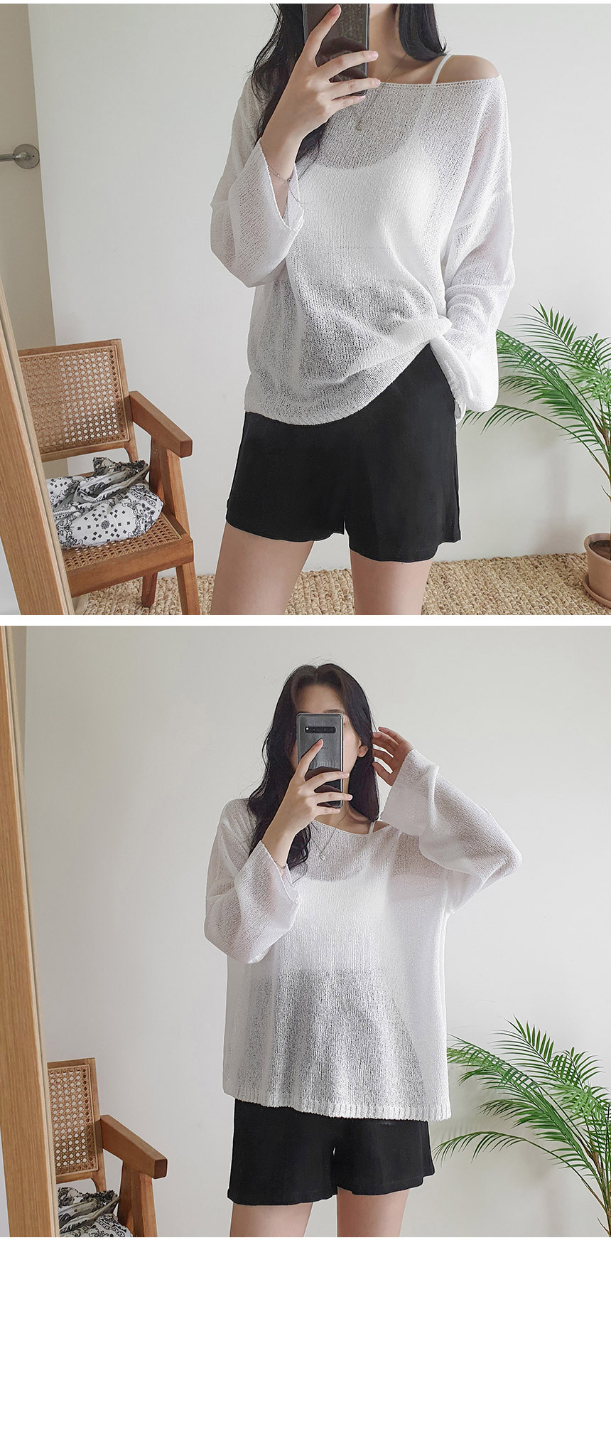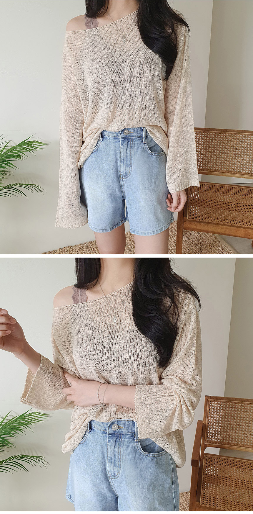 ボートネックブークレ長袖ネットセーター5color