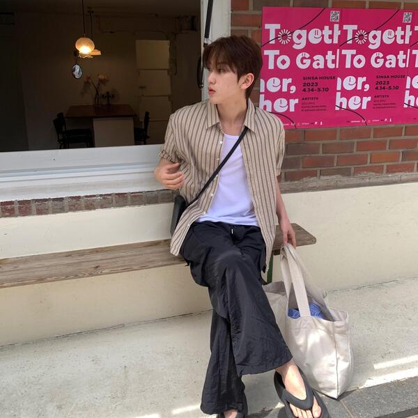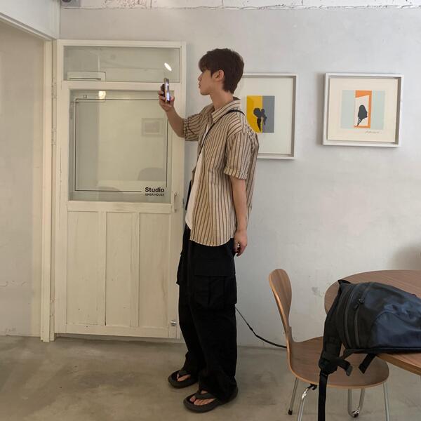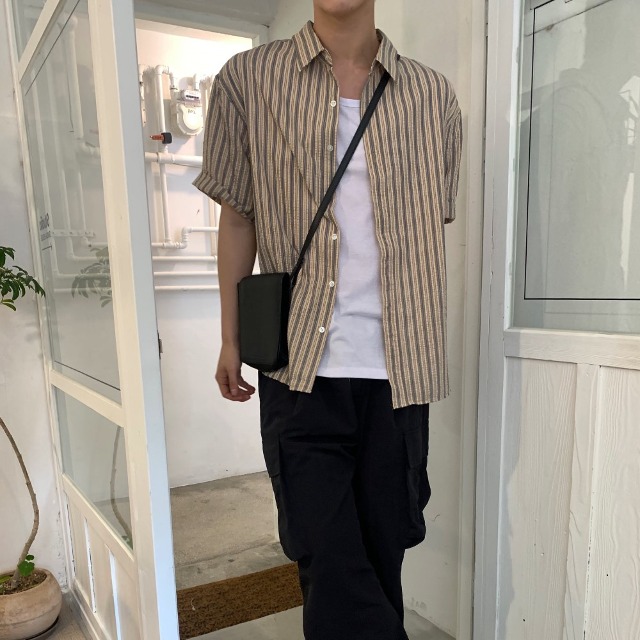 [2color] シアサッカー半袖シャツ