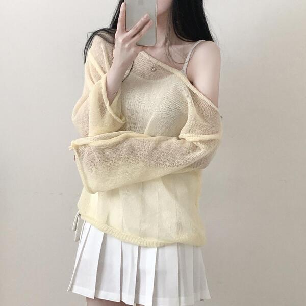 Women's/パステルシースルーオフショルダーロングスリーブニットウェア