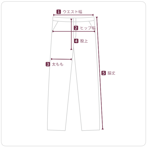 1 ウエスト幅 | 52 20.5 | 56 22 | 60 23.5 |