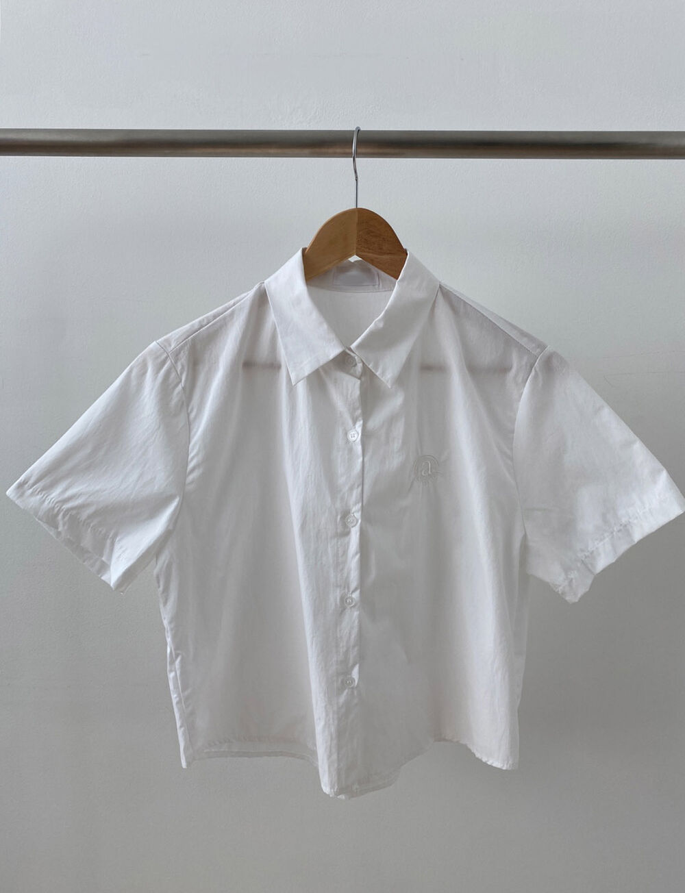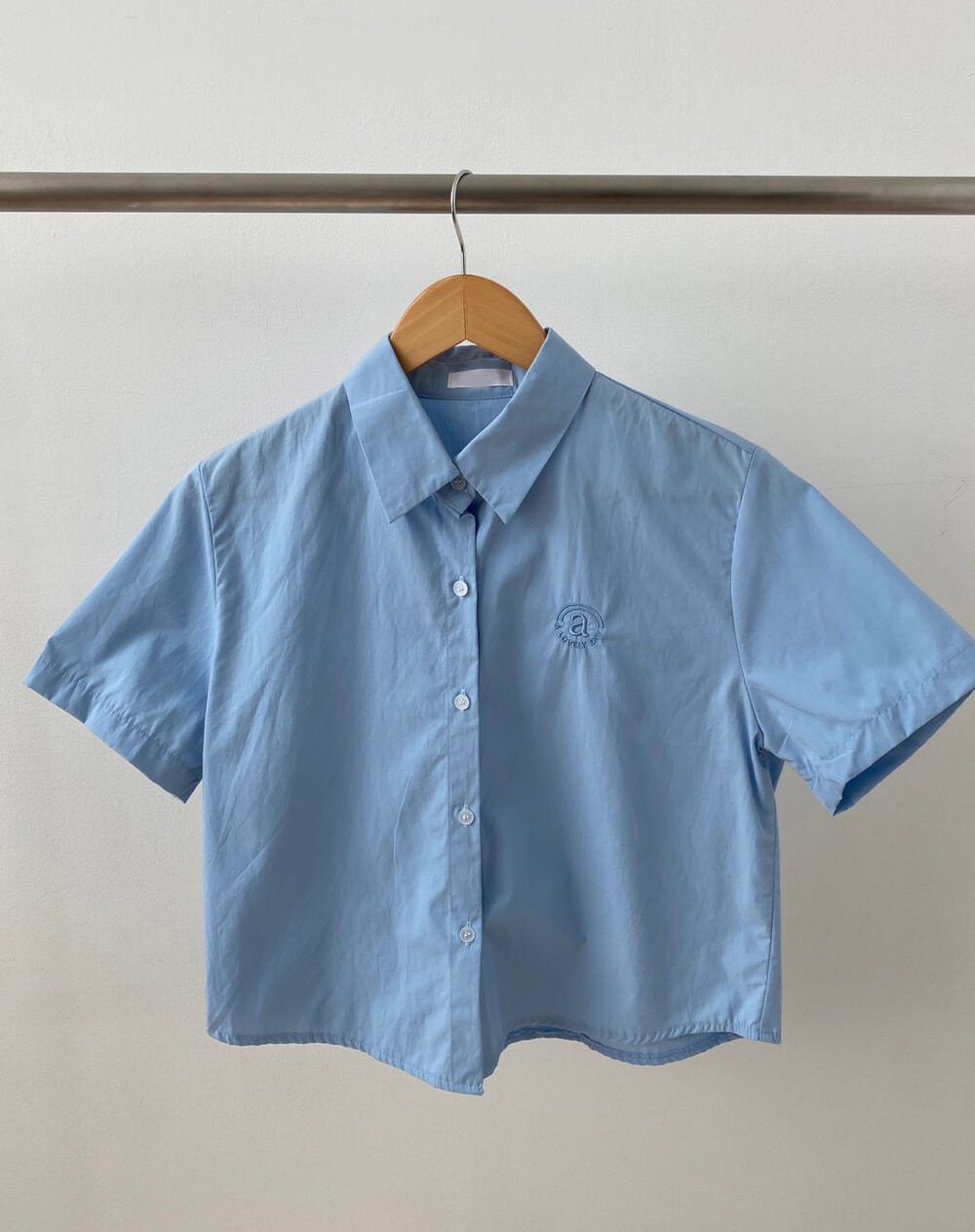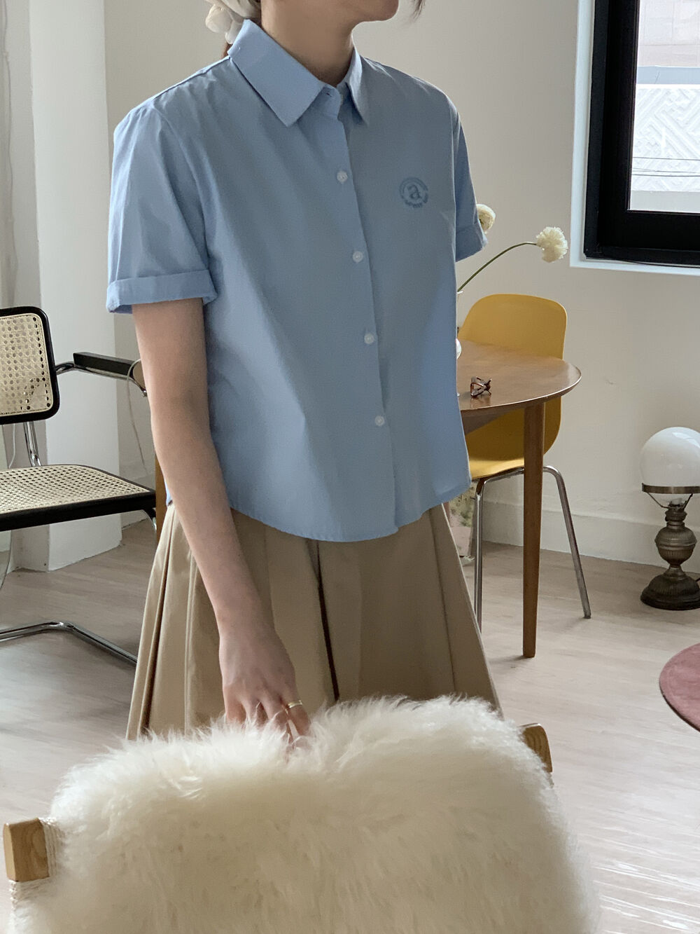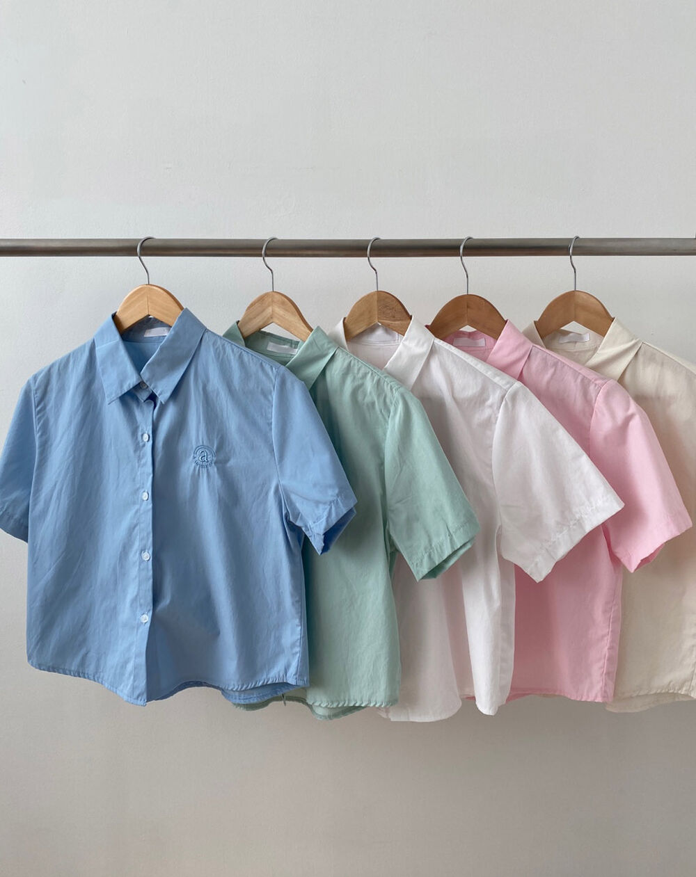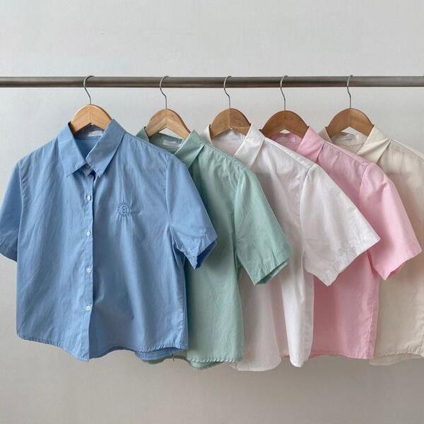 [5 color] 刺繍コットンクロップド半袖シャツ