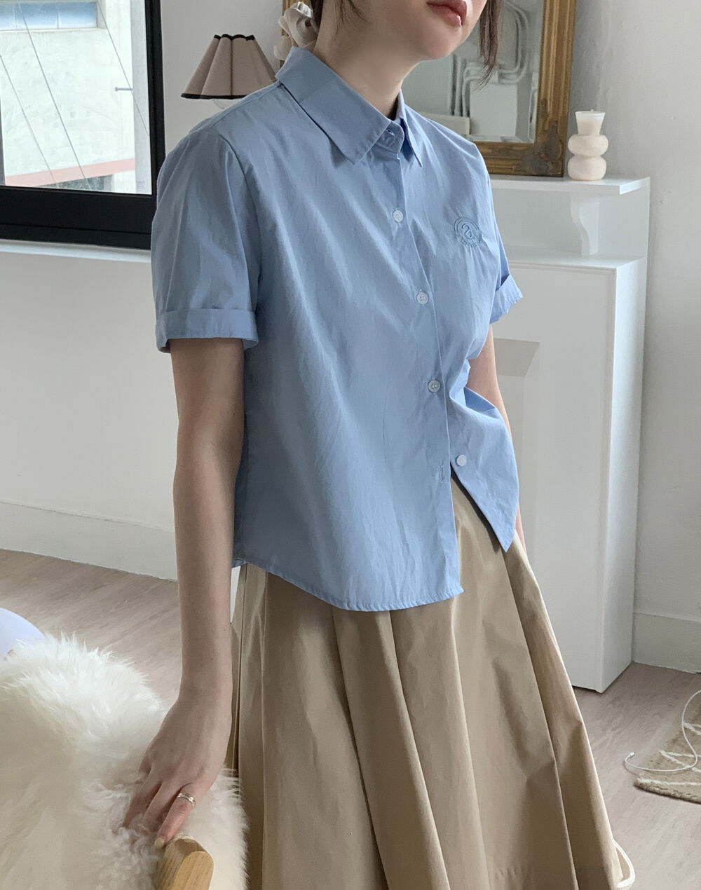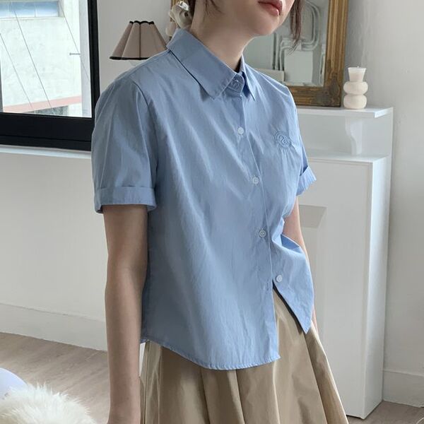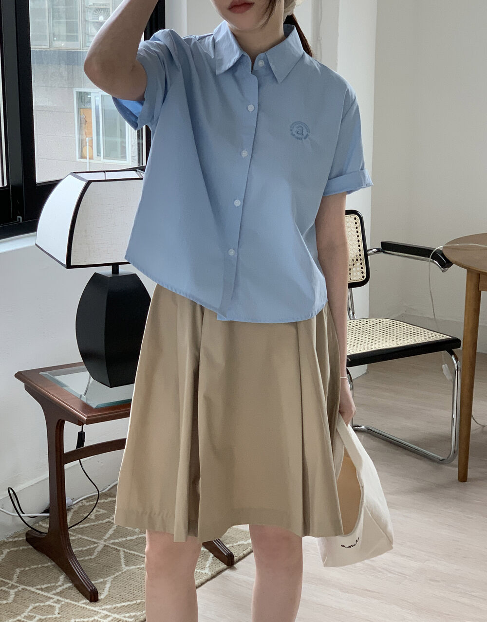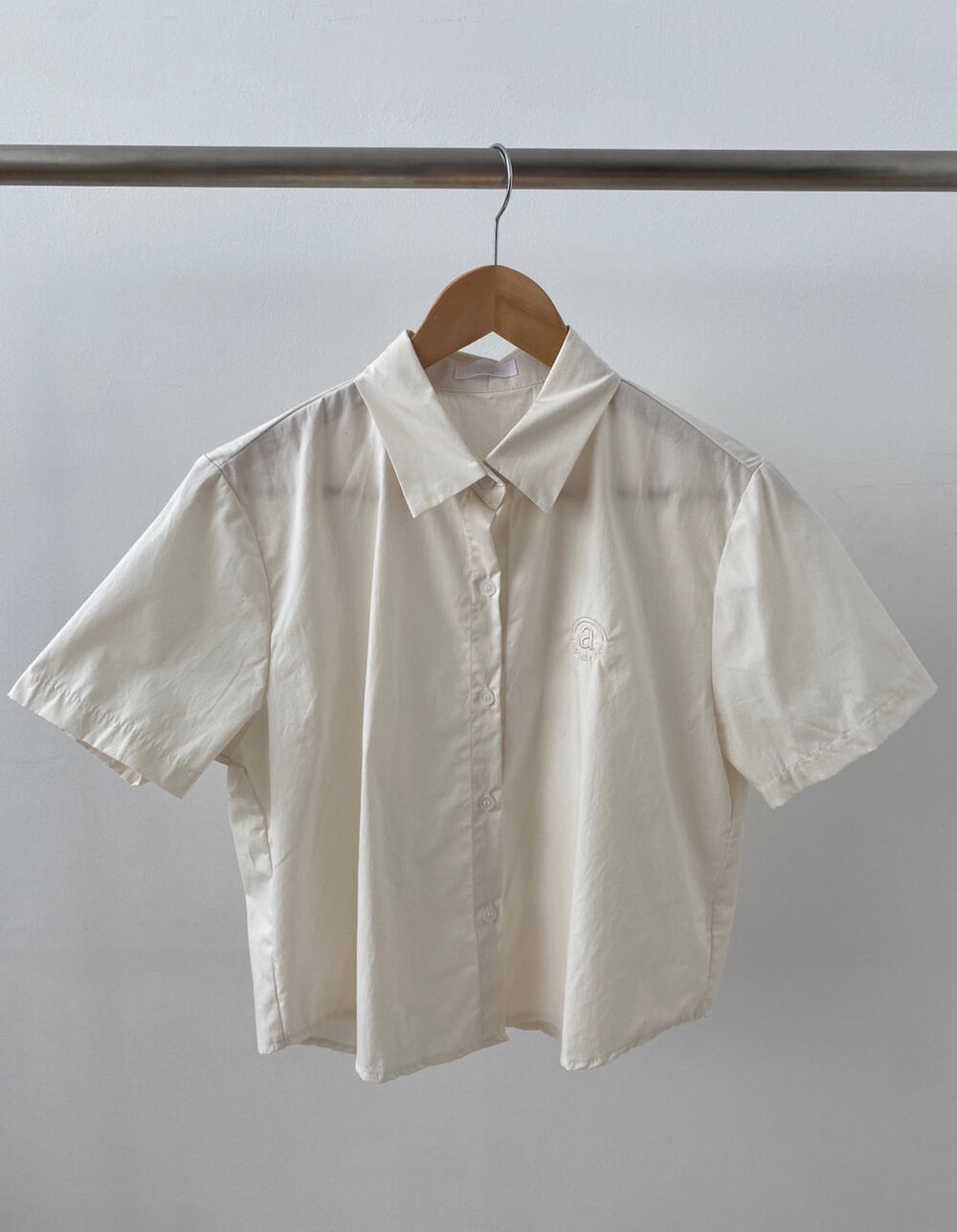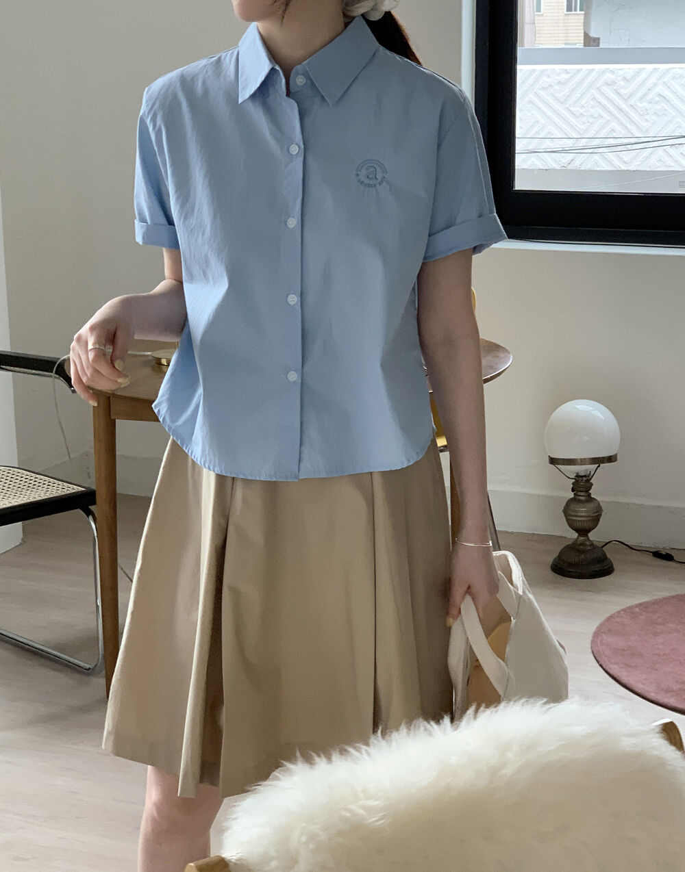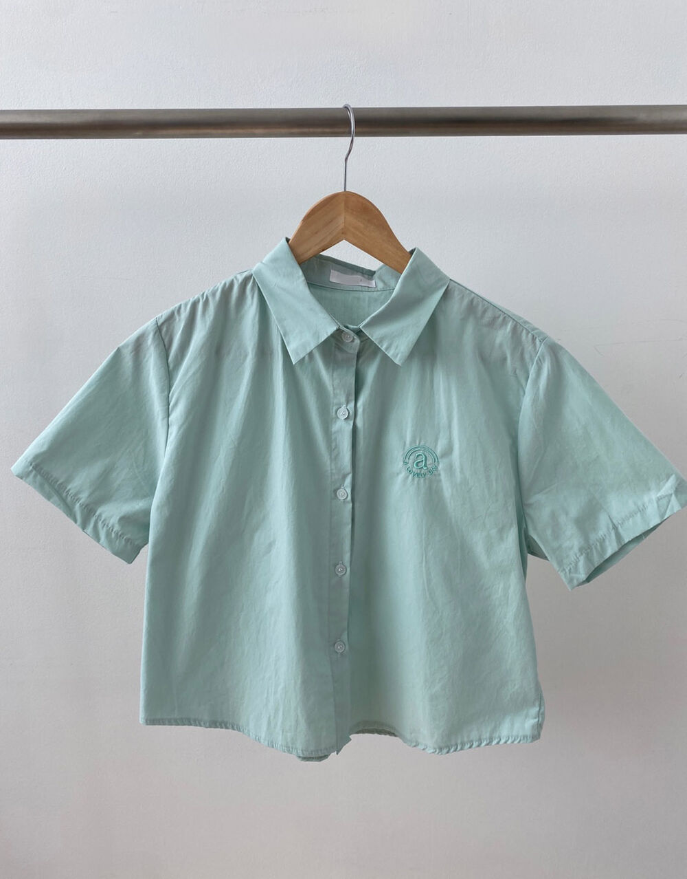 [5 color] 刺繍コットンクロップド半袖シャツ