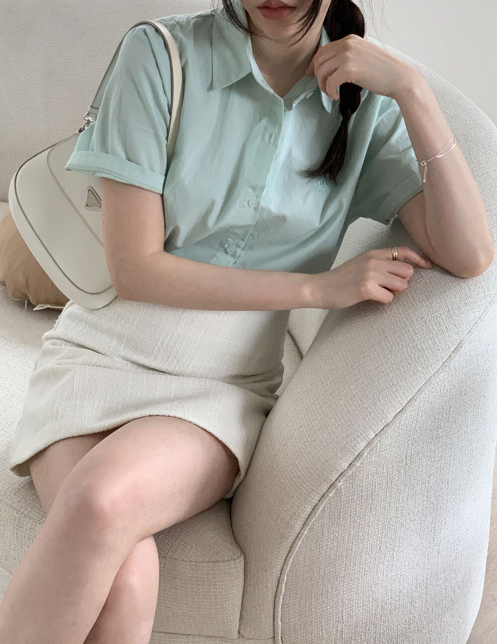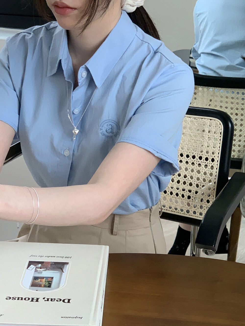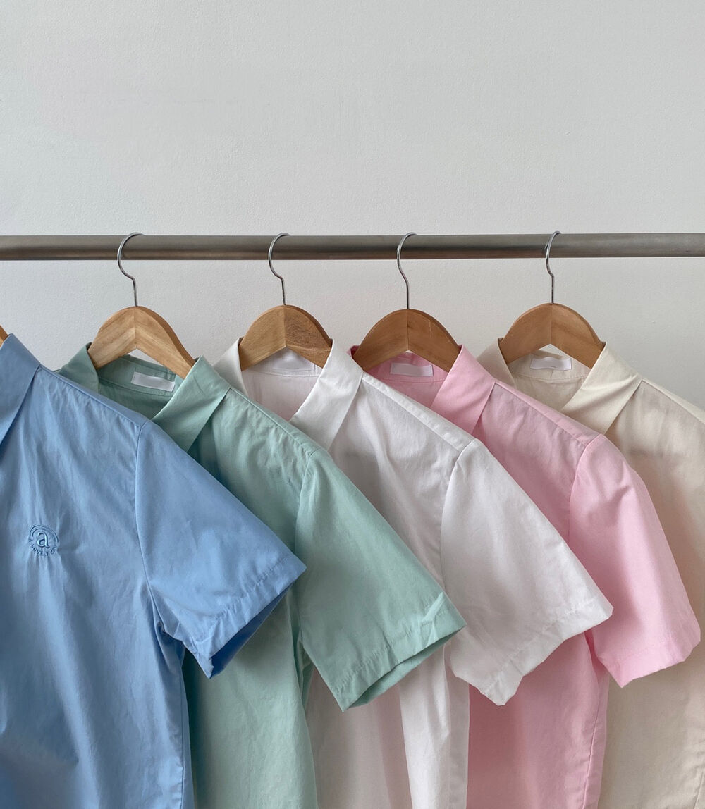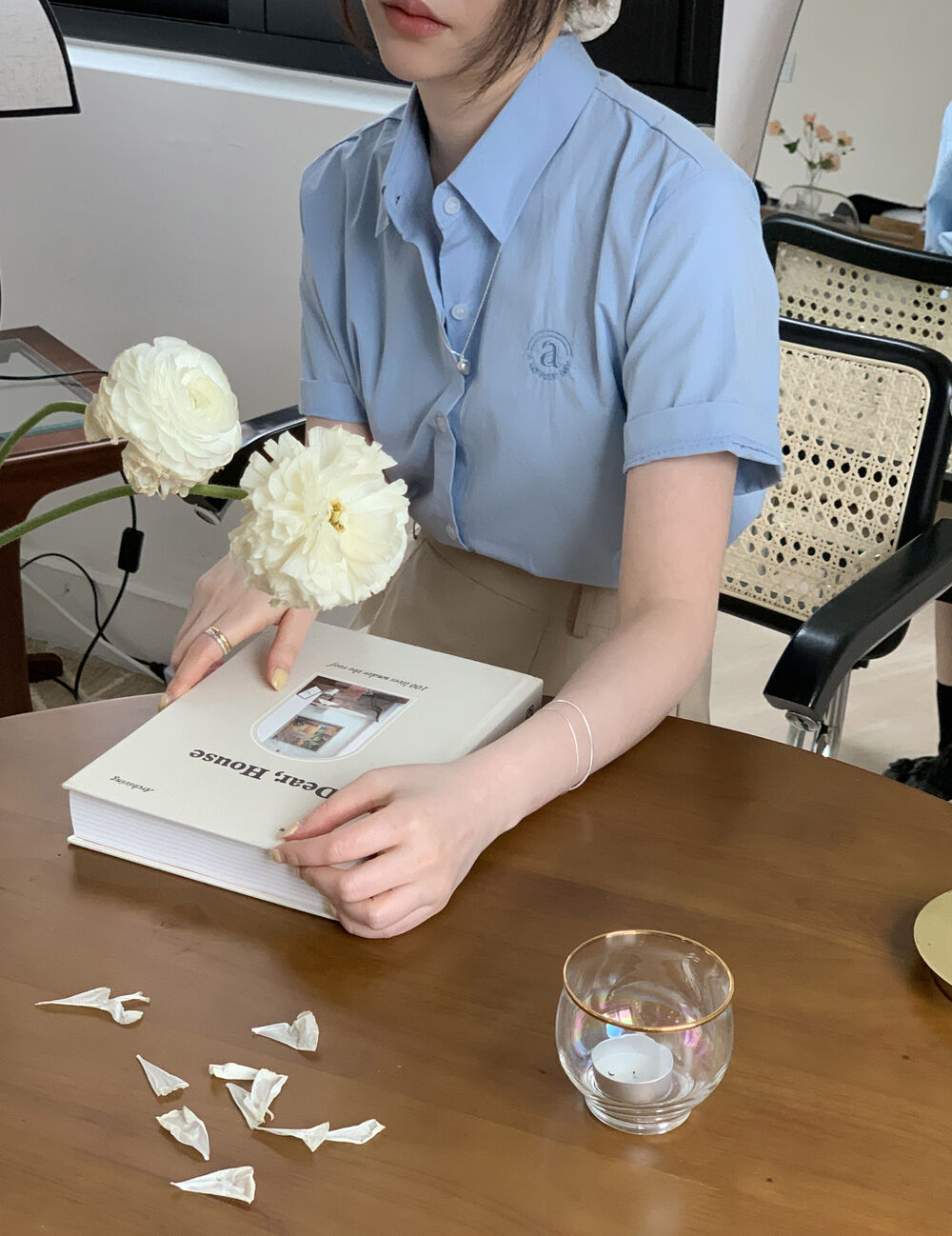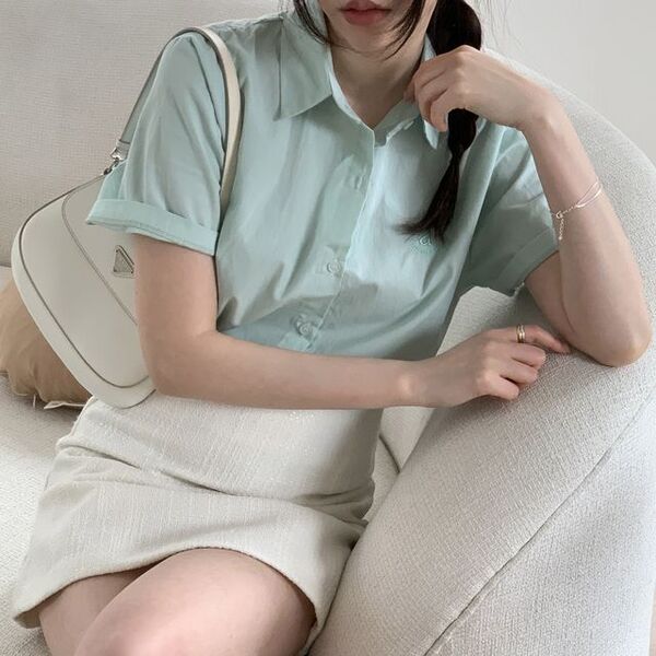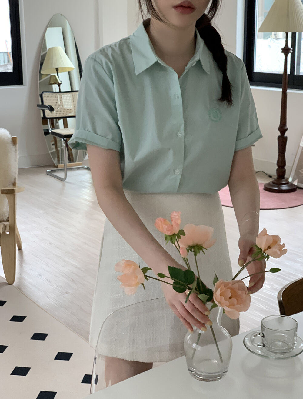 [5 color] 刺繍コットンクロップド半袖シャツ