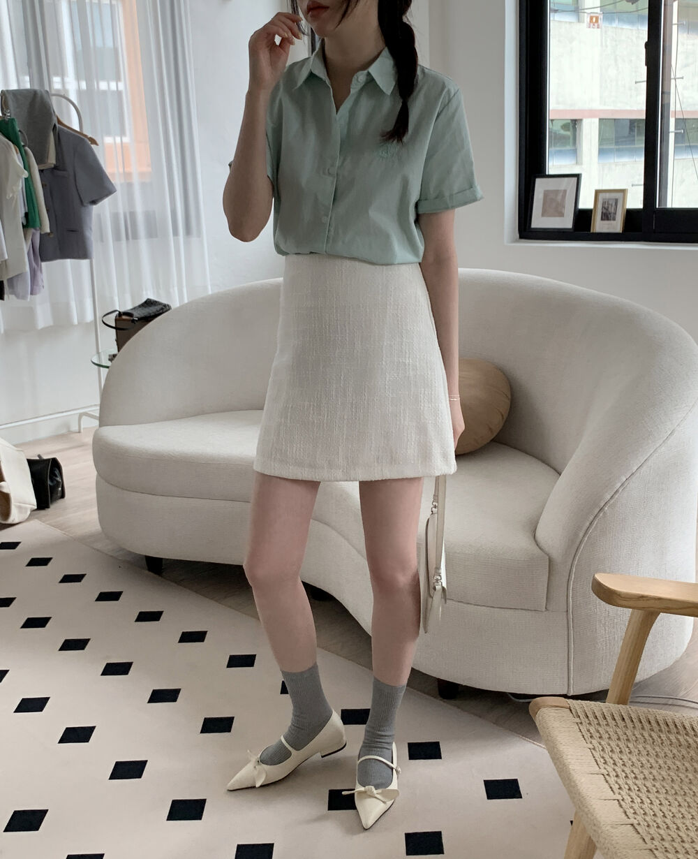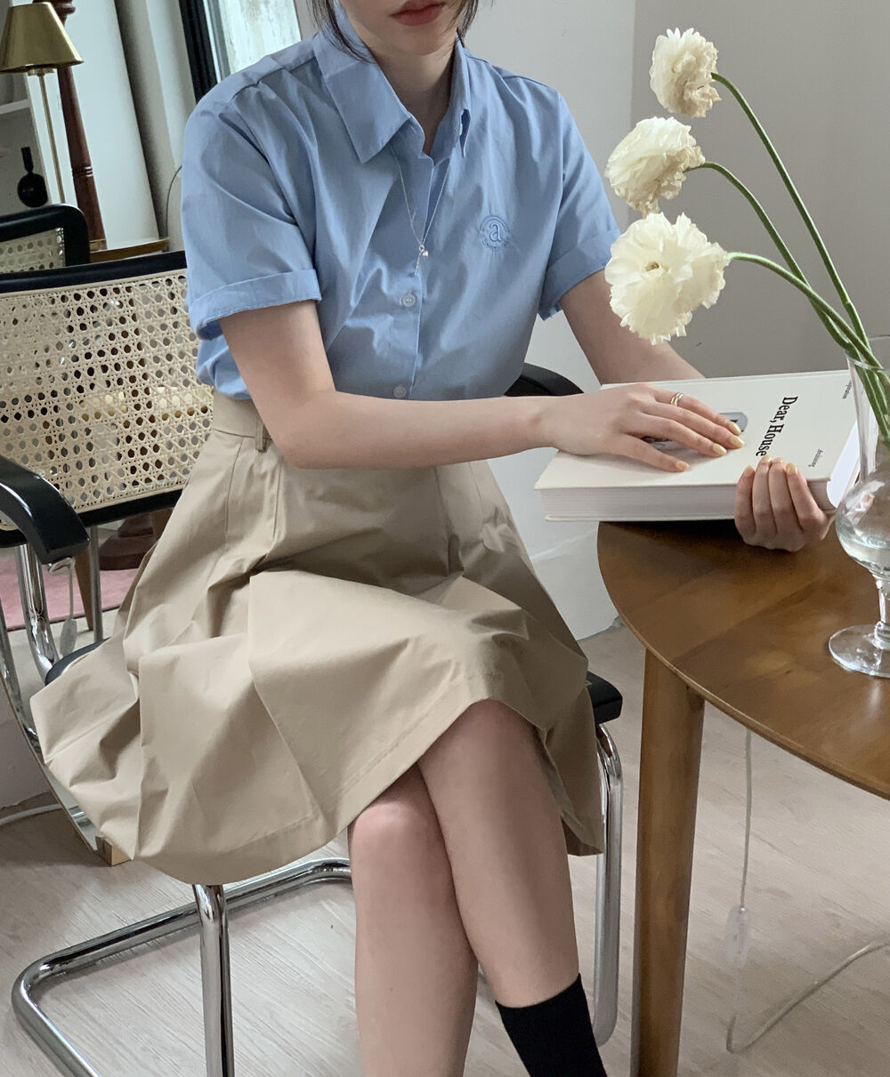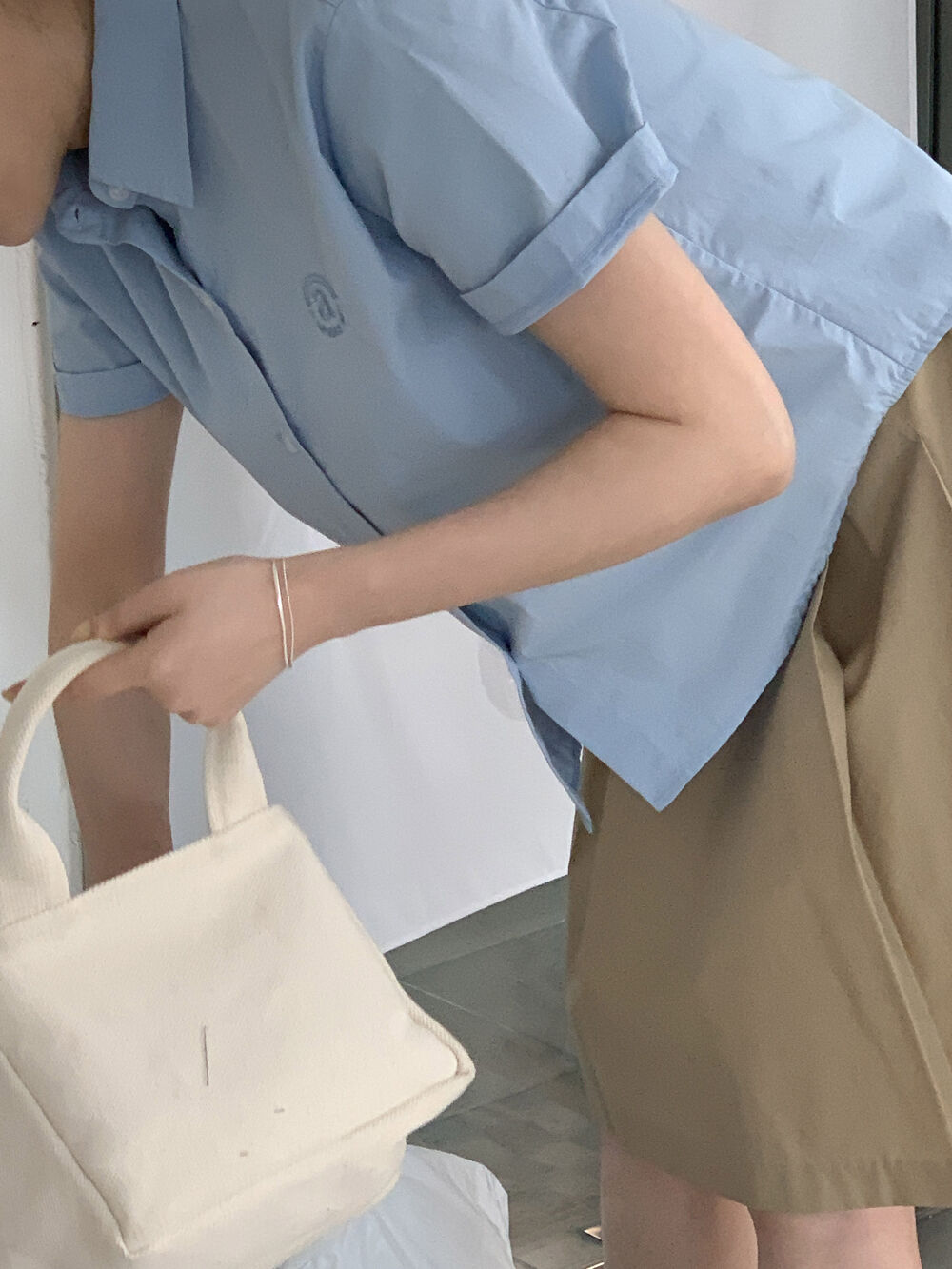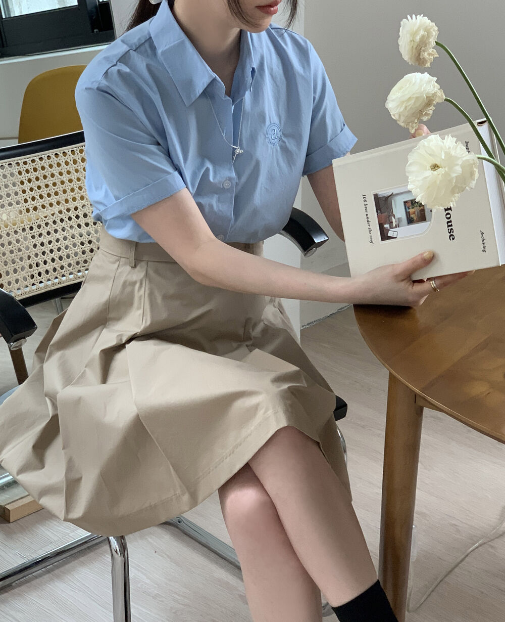 [5 color] 刺繍コットンクロップド半袖シャツ