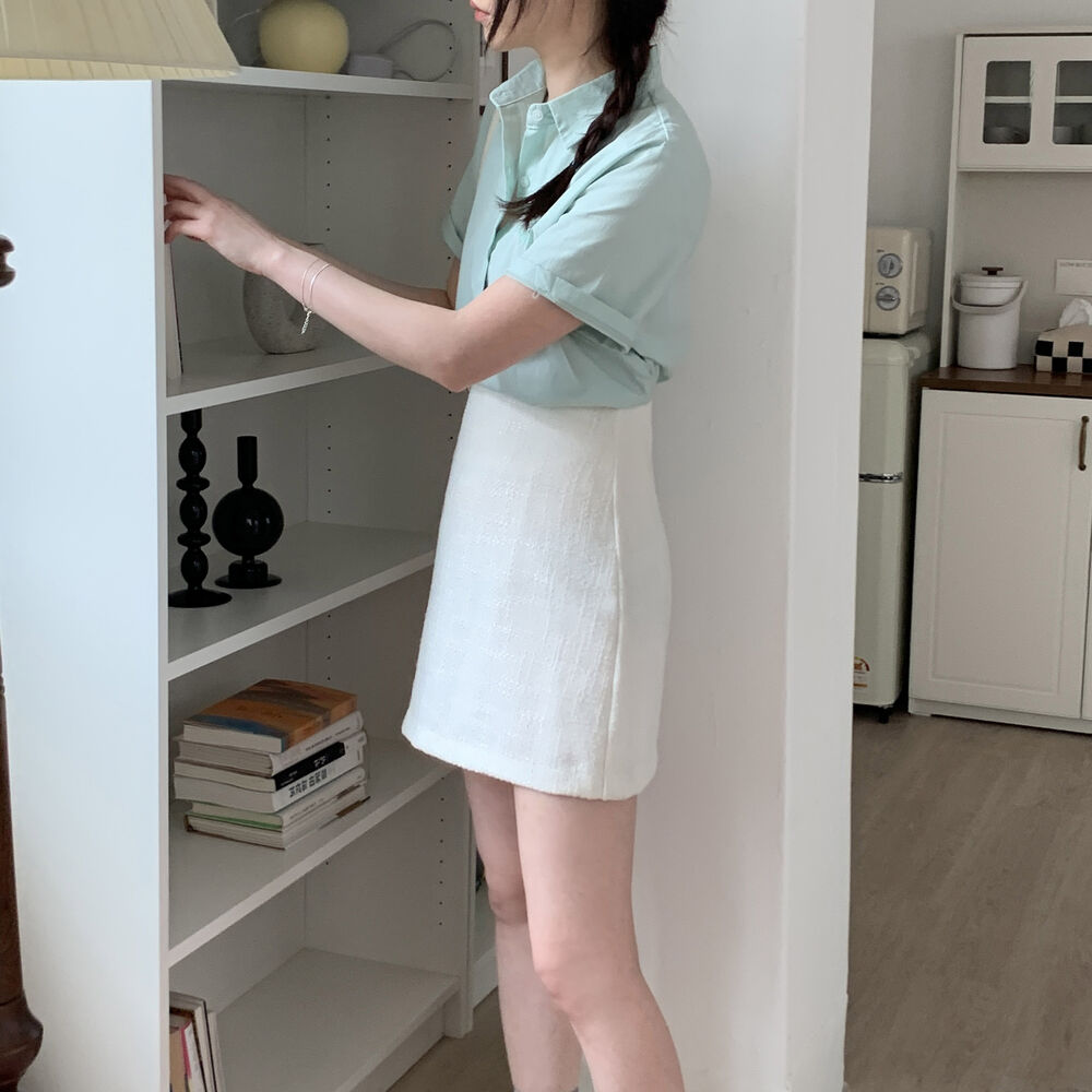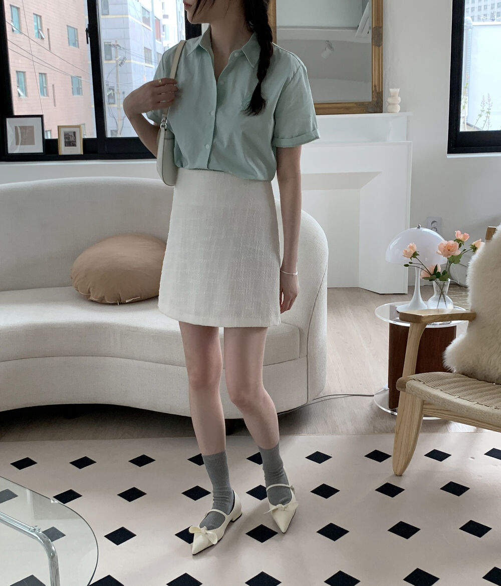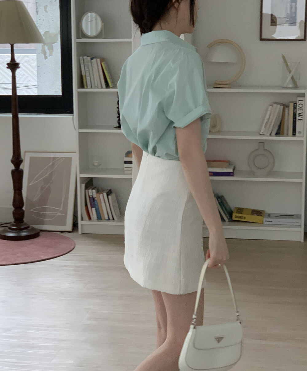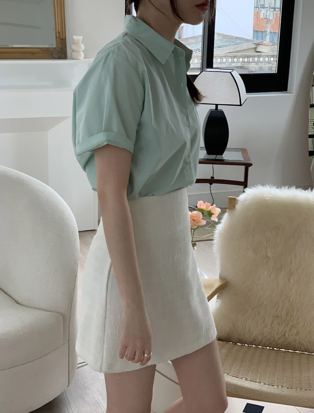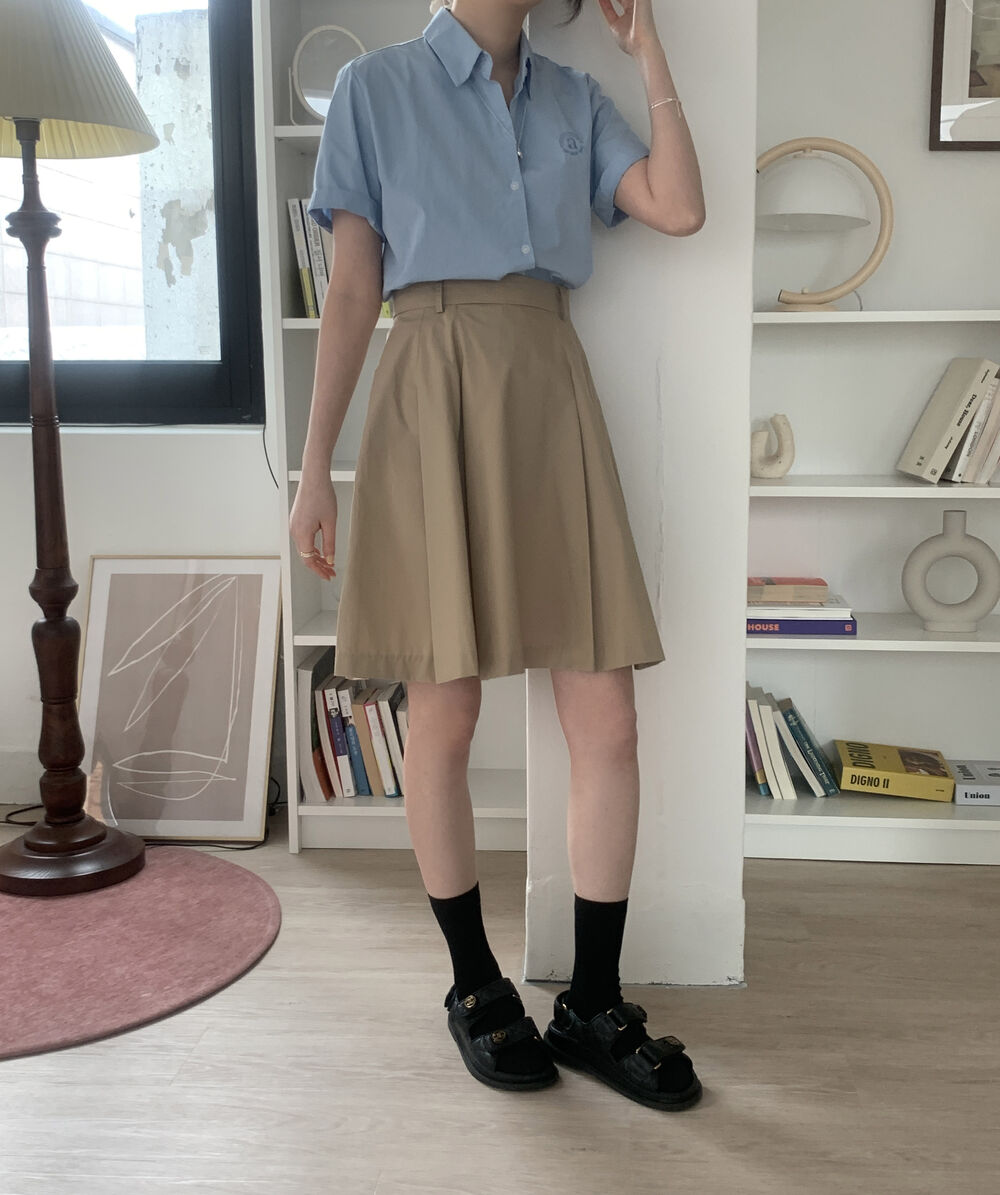 [5 color] 刺繍コットンクロップド半袖シャツ