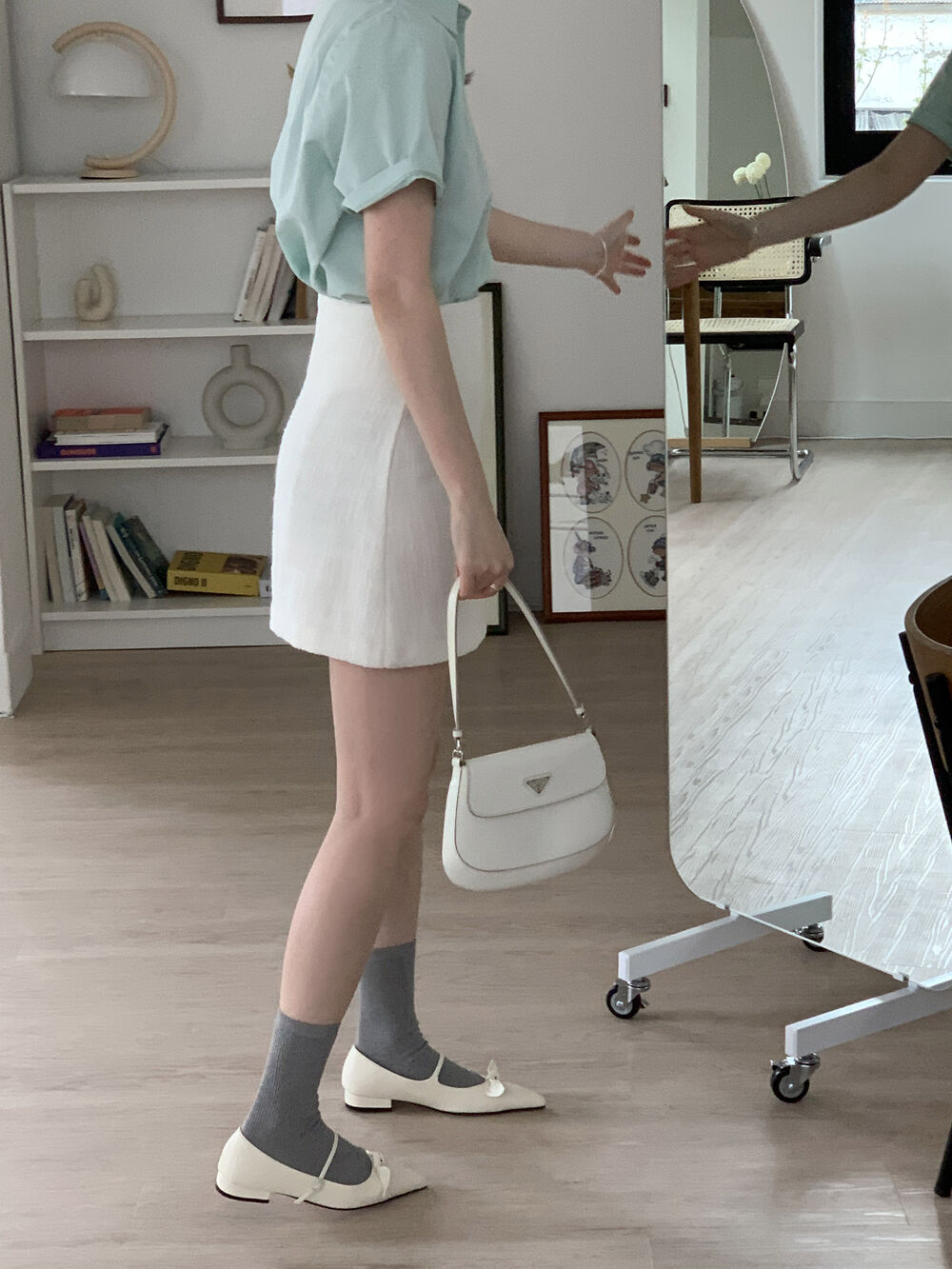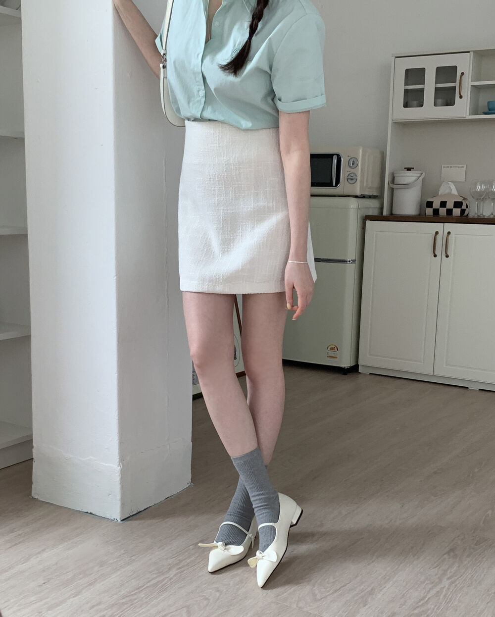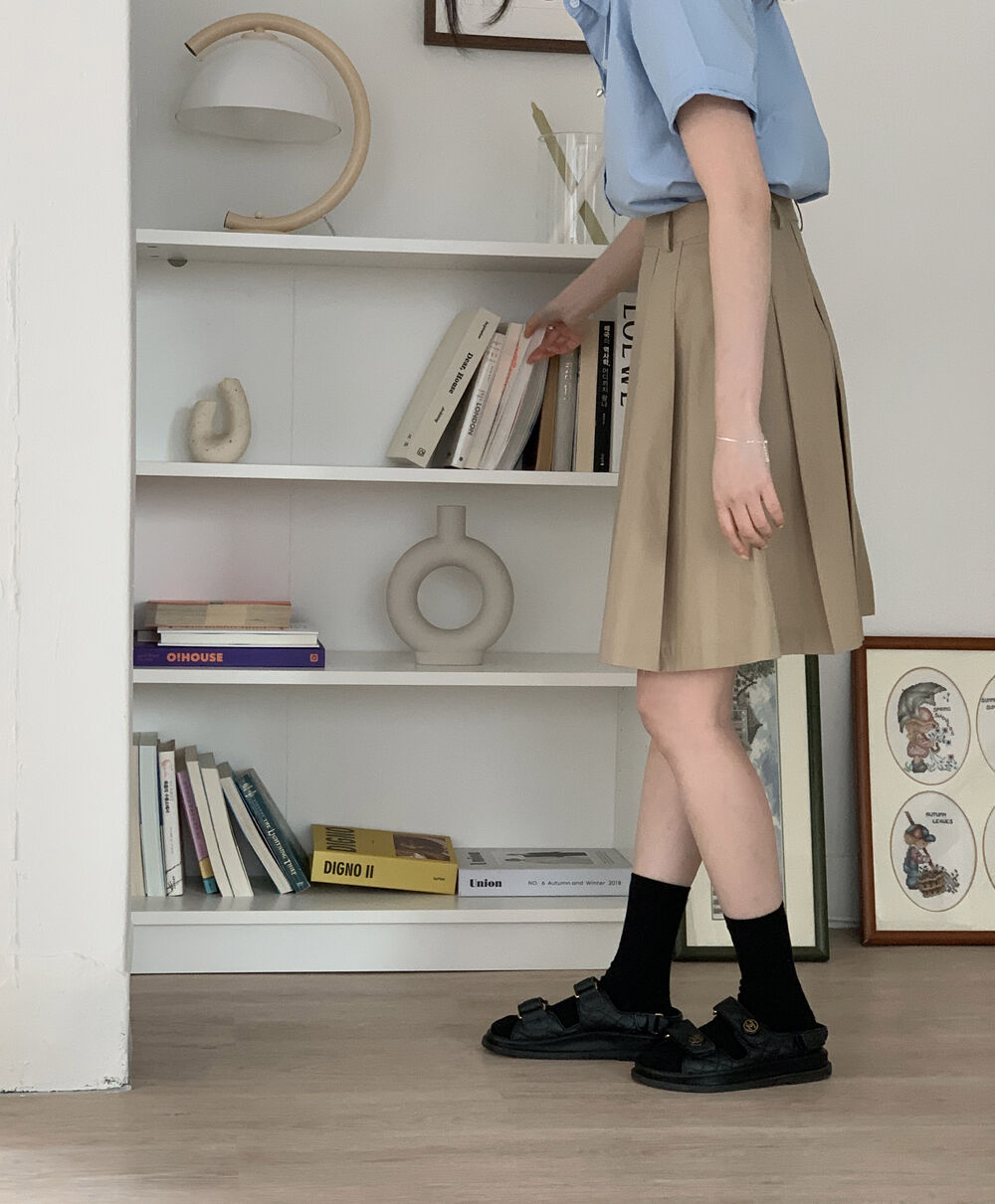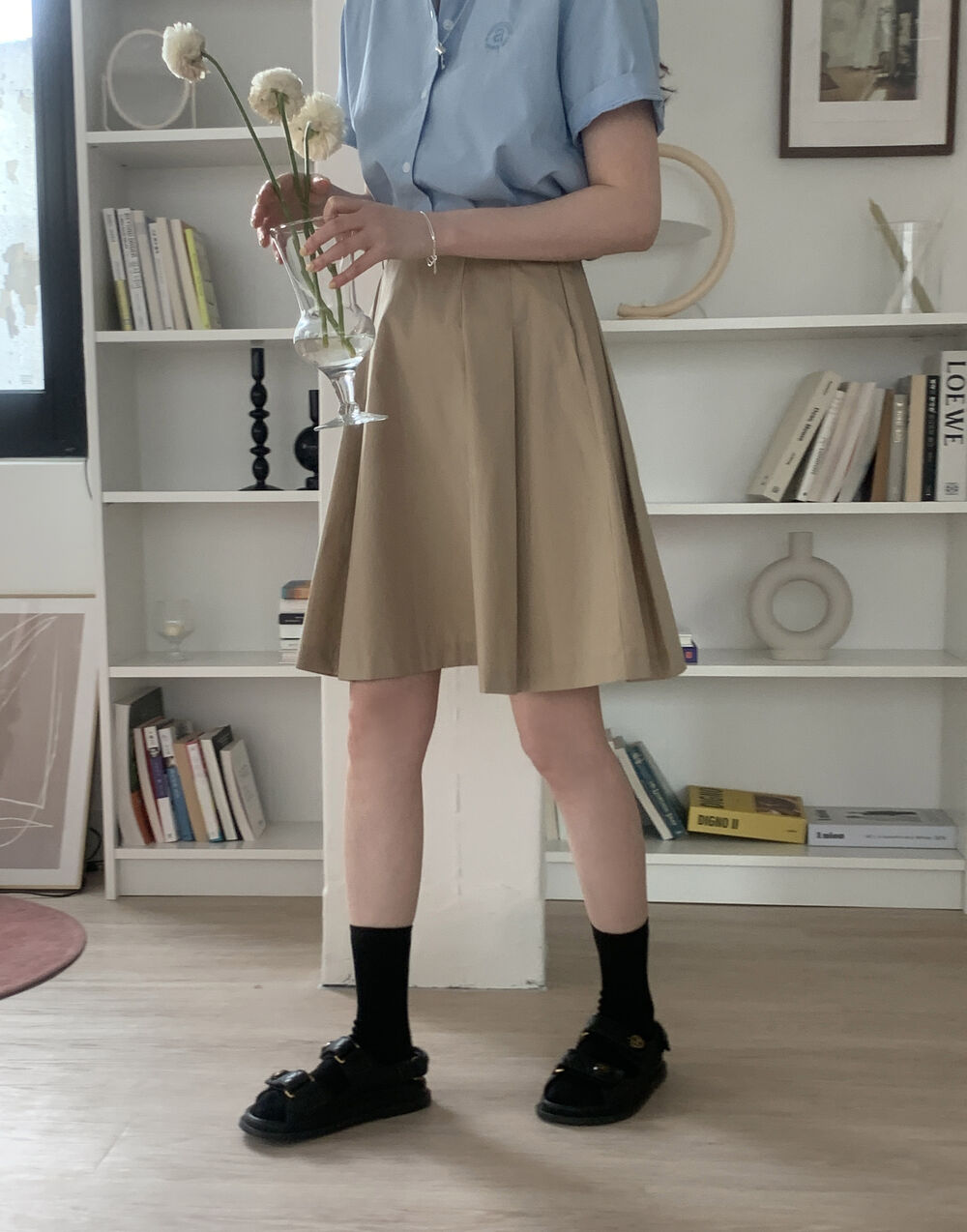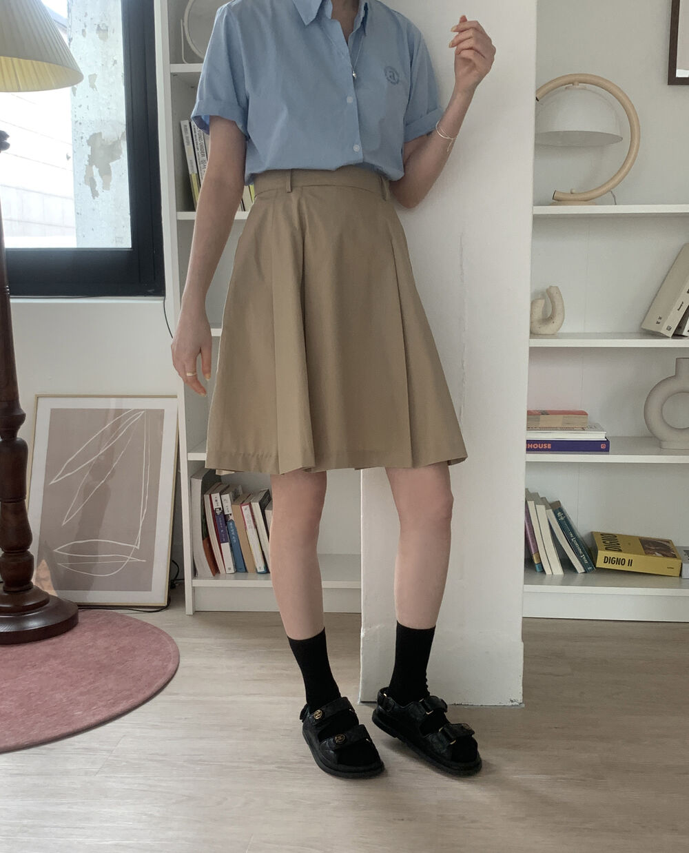 [5 color] 刺繍コットンクロップド半袖シャツ