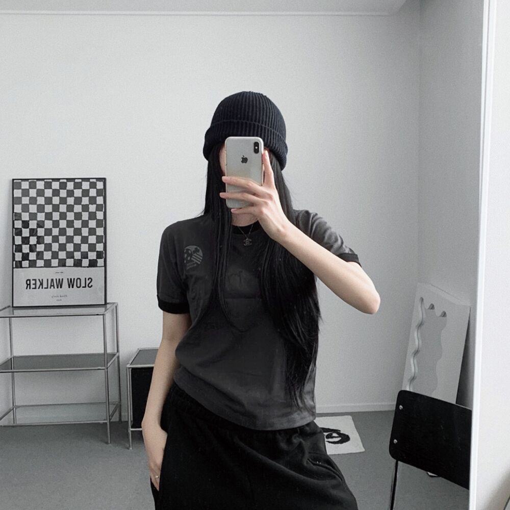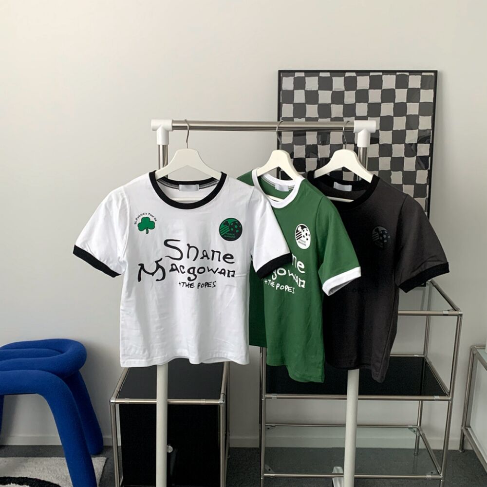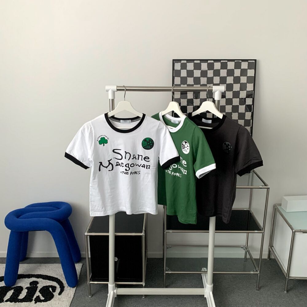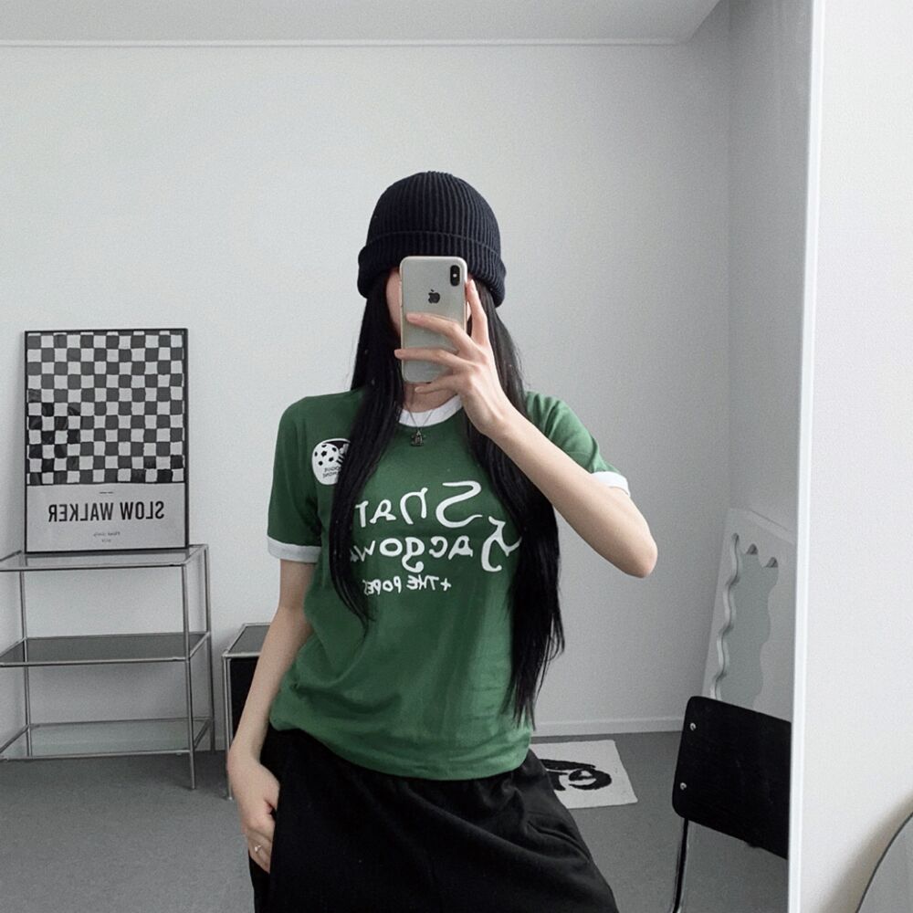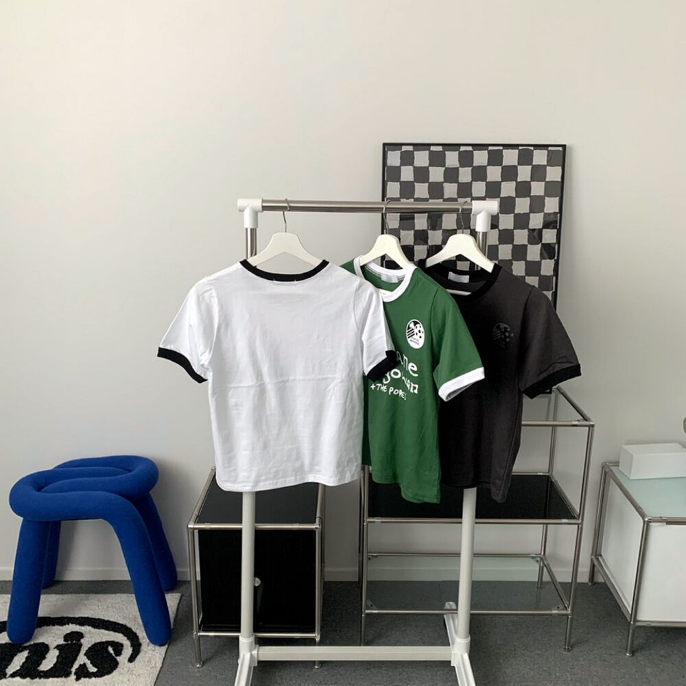ルーズフィットプリントセミクロップド半袖 Tシャツ(3color)