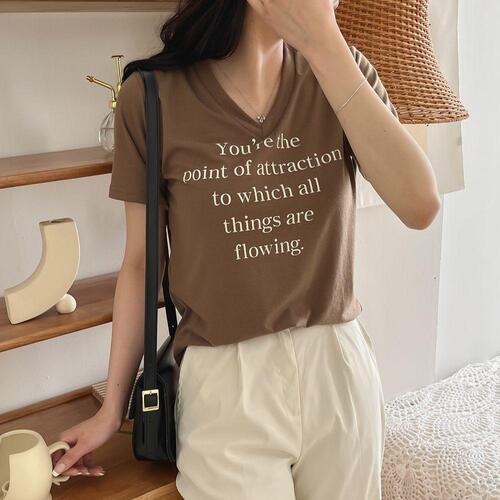 レタリング Vネック コットン ベーシック ソフト Tシャツ