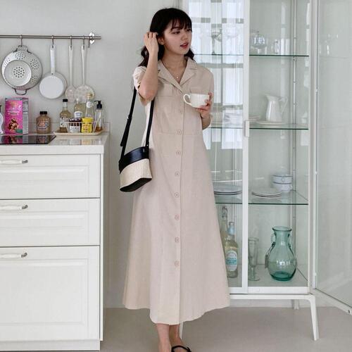 無地 ポケット ナイロン ベーシック ロング ドレス