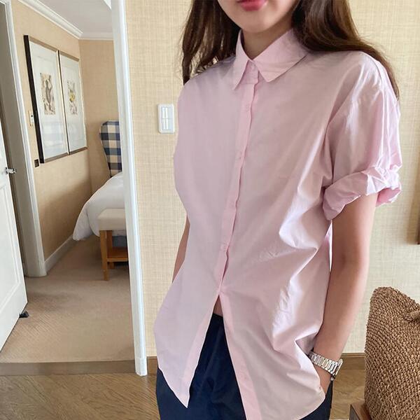 [Dearest] バストレタリングロールアップ袖シャツ(ピンク)