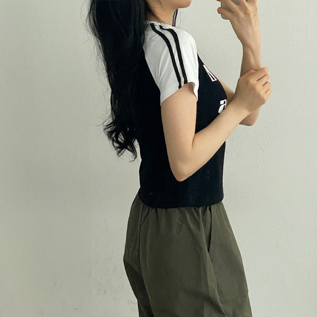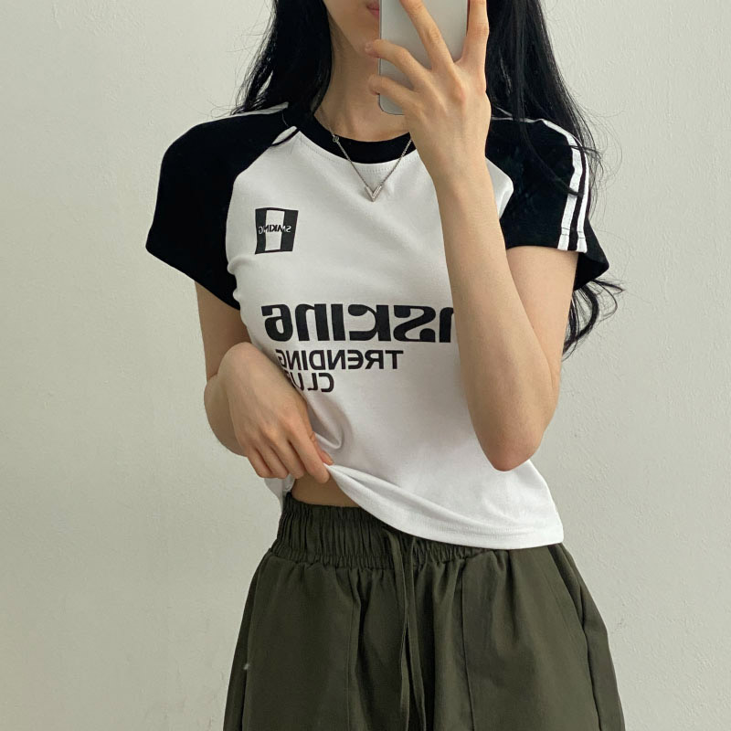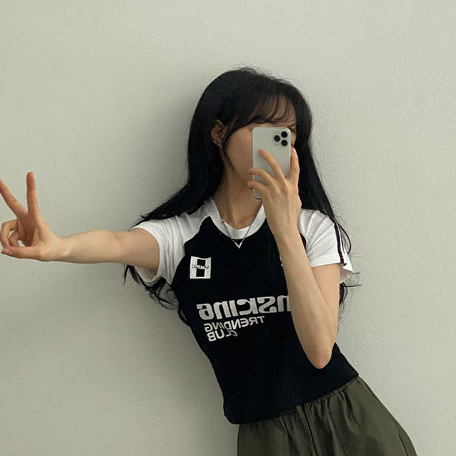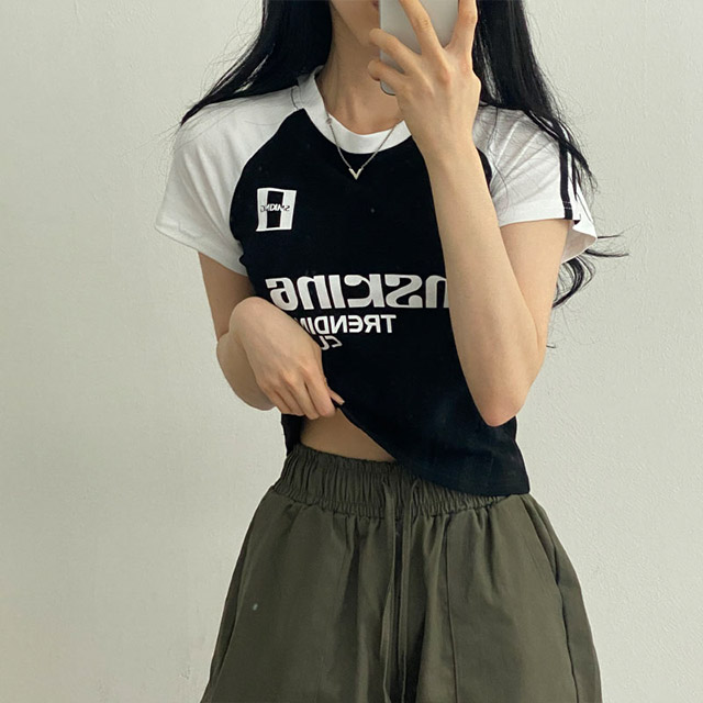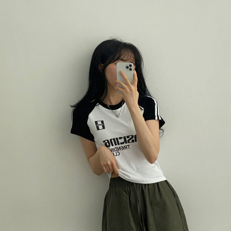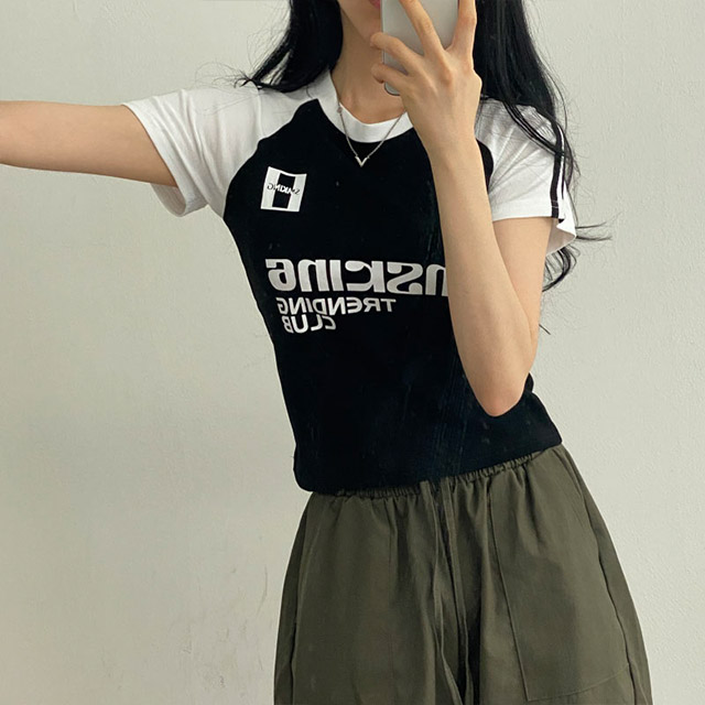 Women's/[2colors] y2k配色レタリング半袖Tシャツ
