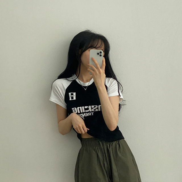 [2colors] y2k配色レタリング半袖Tシャツ