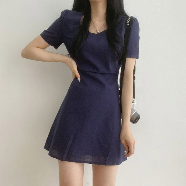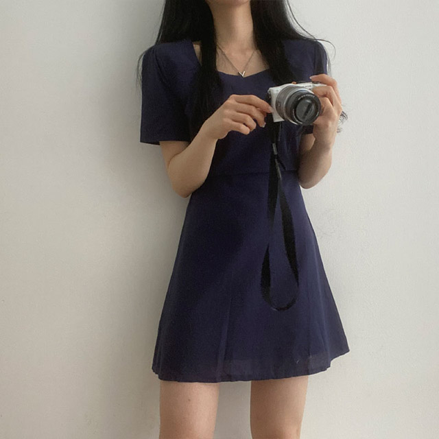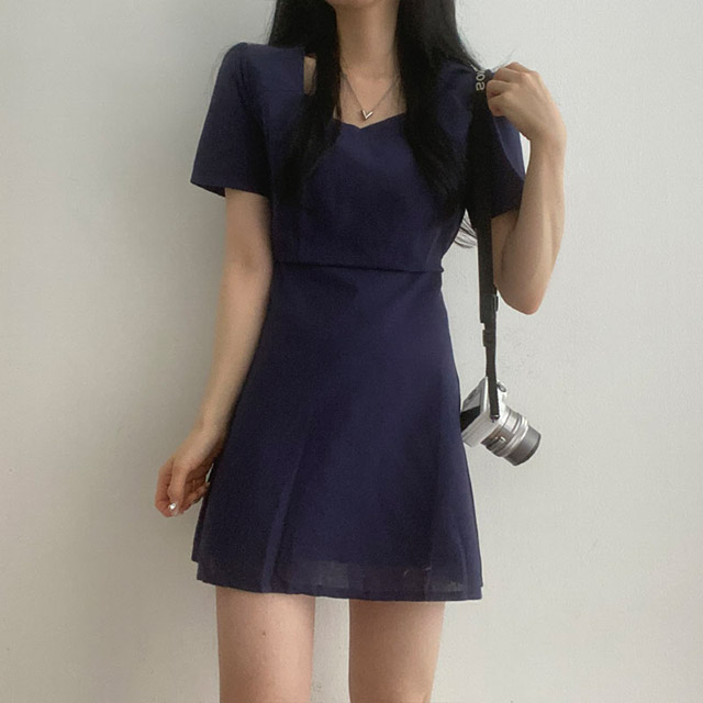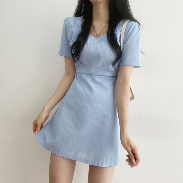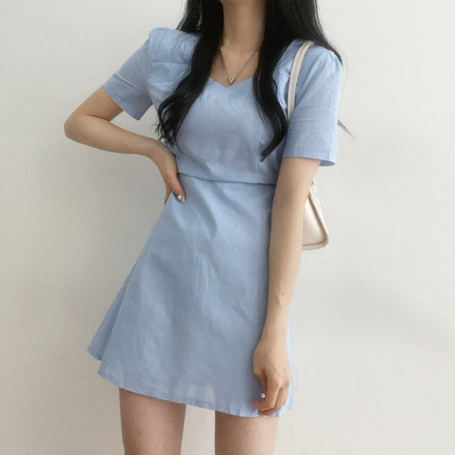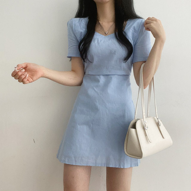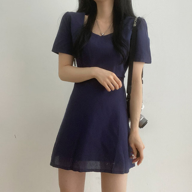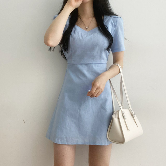 Women's/[3colors] ピュア裏リボンハートネックミニワンピース