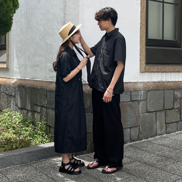 ナイロン半袖シャツワンピース