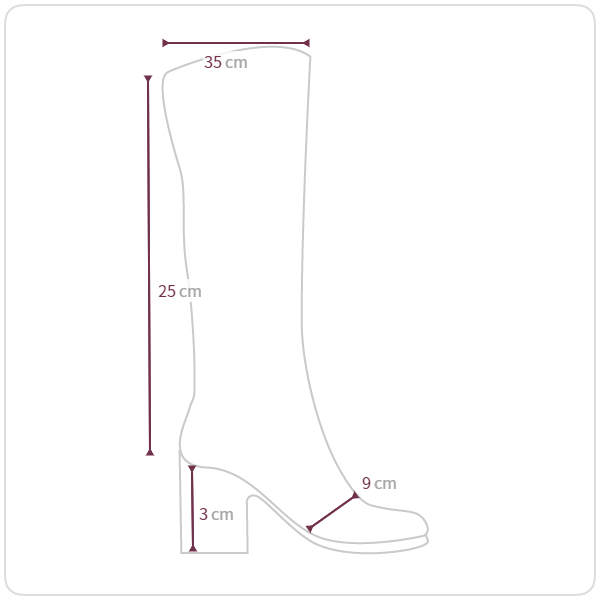 ヒールの高さ 3 / 前足高さ 1.2 / 足幅 9 / 入口周り 37 / ふくらはぎ 33 / 着丈 35