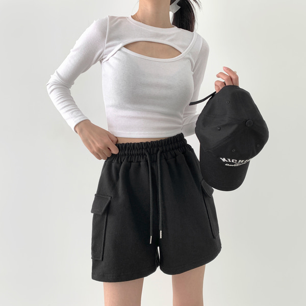 カーゴポケットゴムY2Kトレーニングショートパンツ