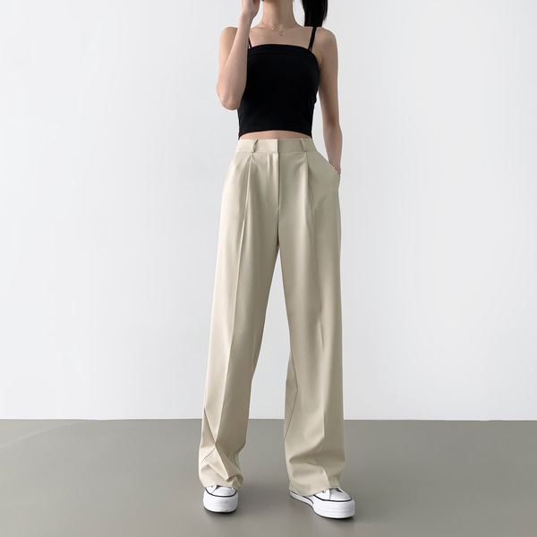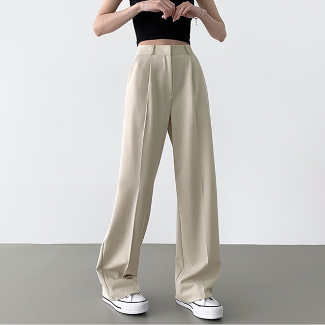 [short/long] 春夏フィットタック入りロングワイドスラックス