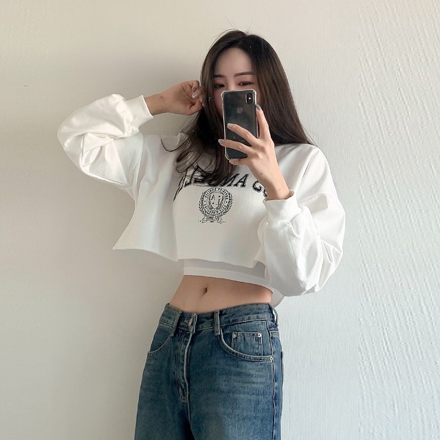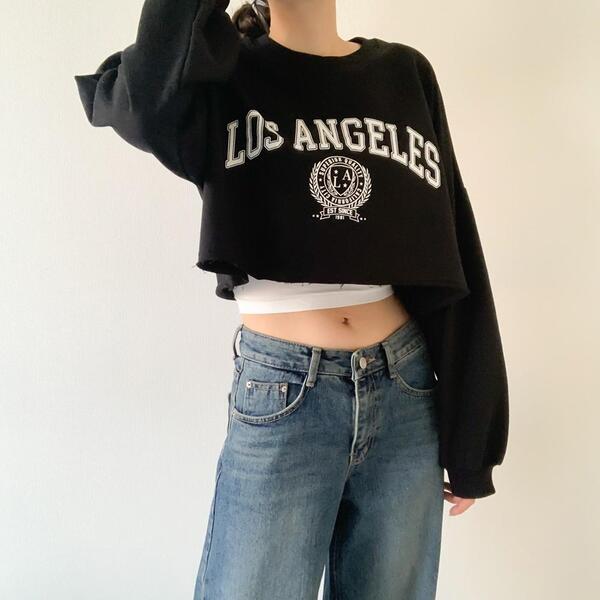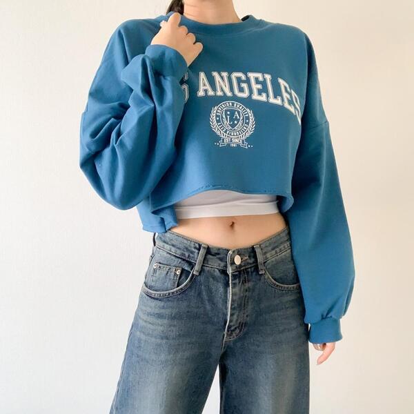 オーバーサイズニレタリングクロップドスウェットTシャツ