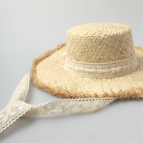 リボン麦わら帽子